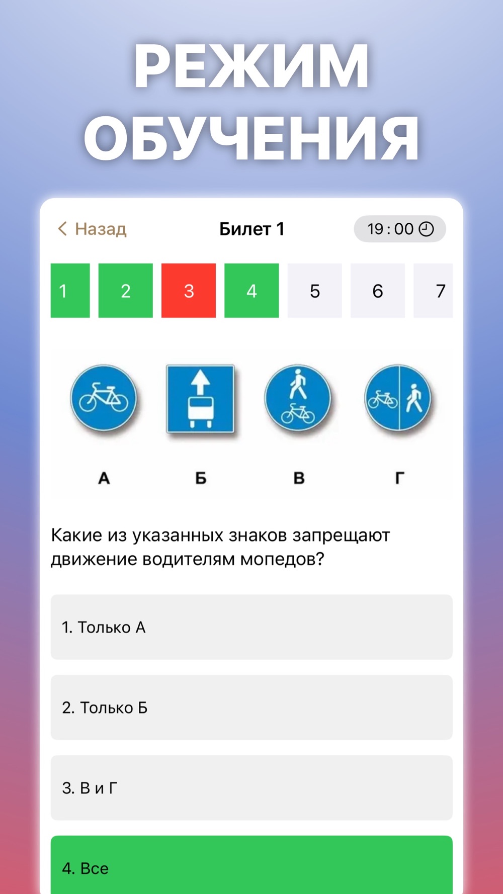 Приложение включает Билеты и Экзамен на сдачу ПДД для водительской категории: