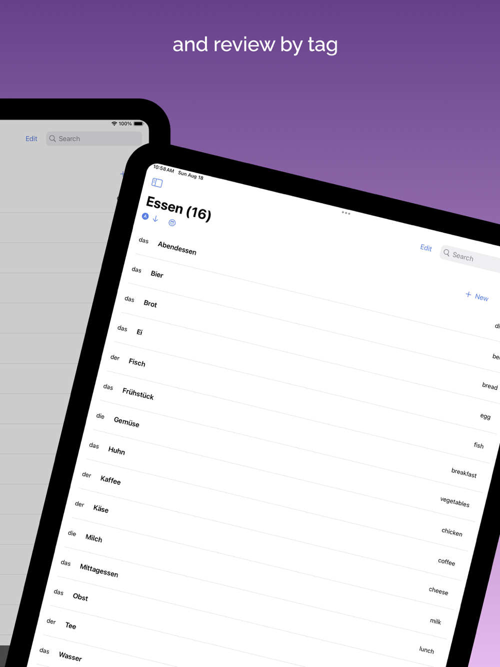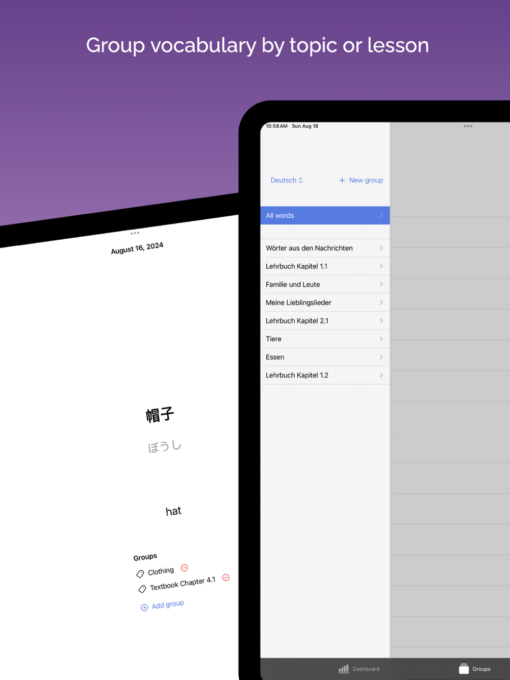 - Organize vocabulary with custom tags, groups, and lesson markers