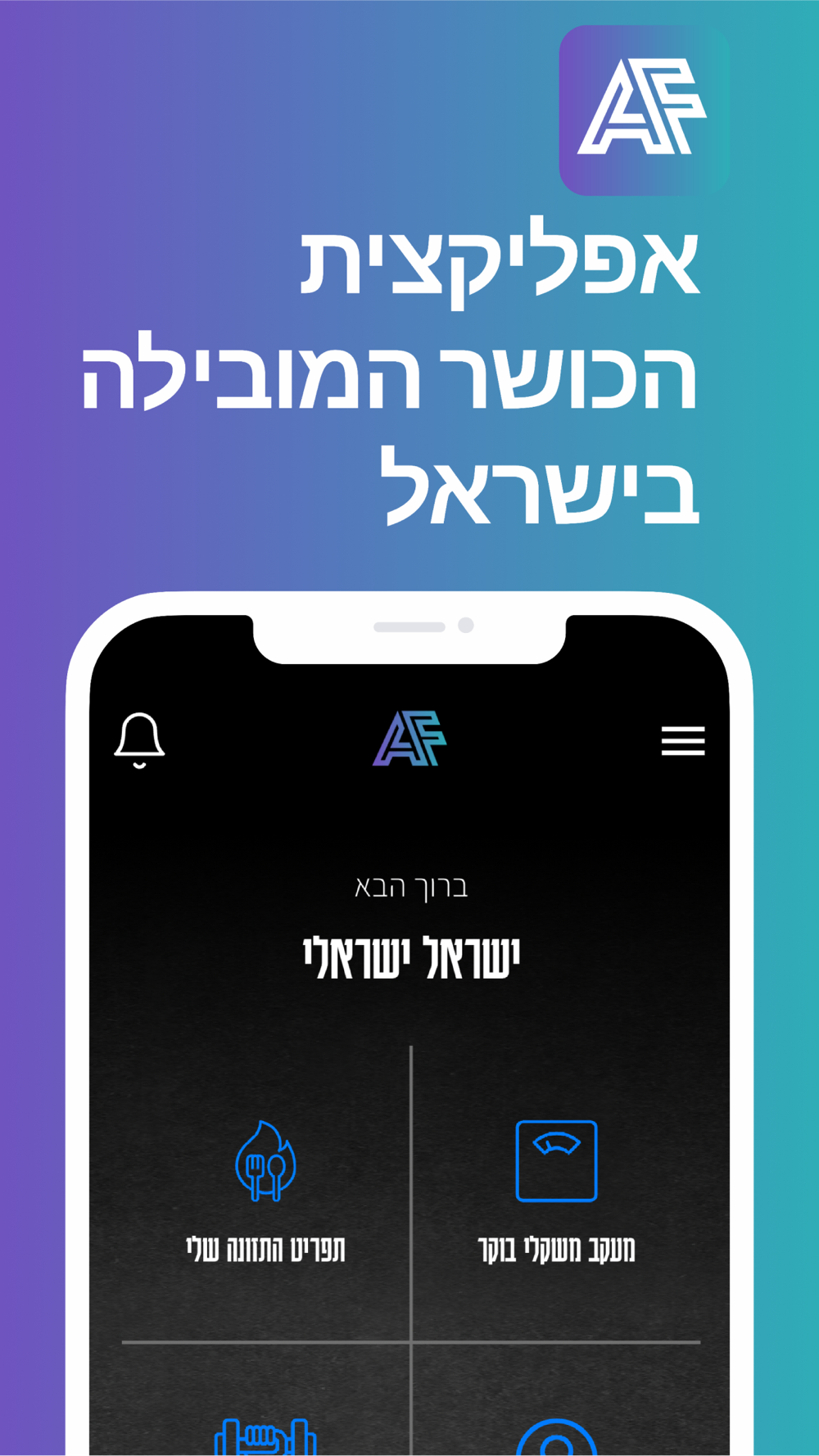 אפליקציית הכושר המובילה בישראל עכשיו בכף ידך! נהלו ועקבו אחר המשקל שלכם, צפו בתוכניות תזונה ואימונים המותאמים על ידי המאמן שלך ועוד