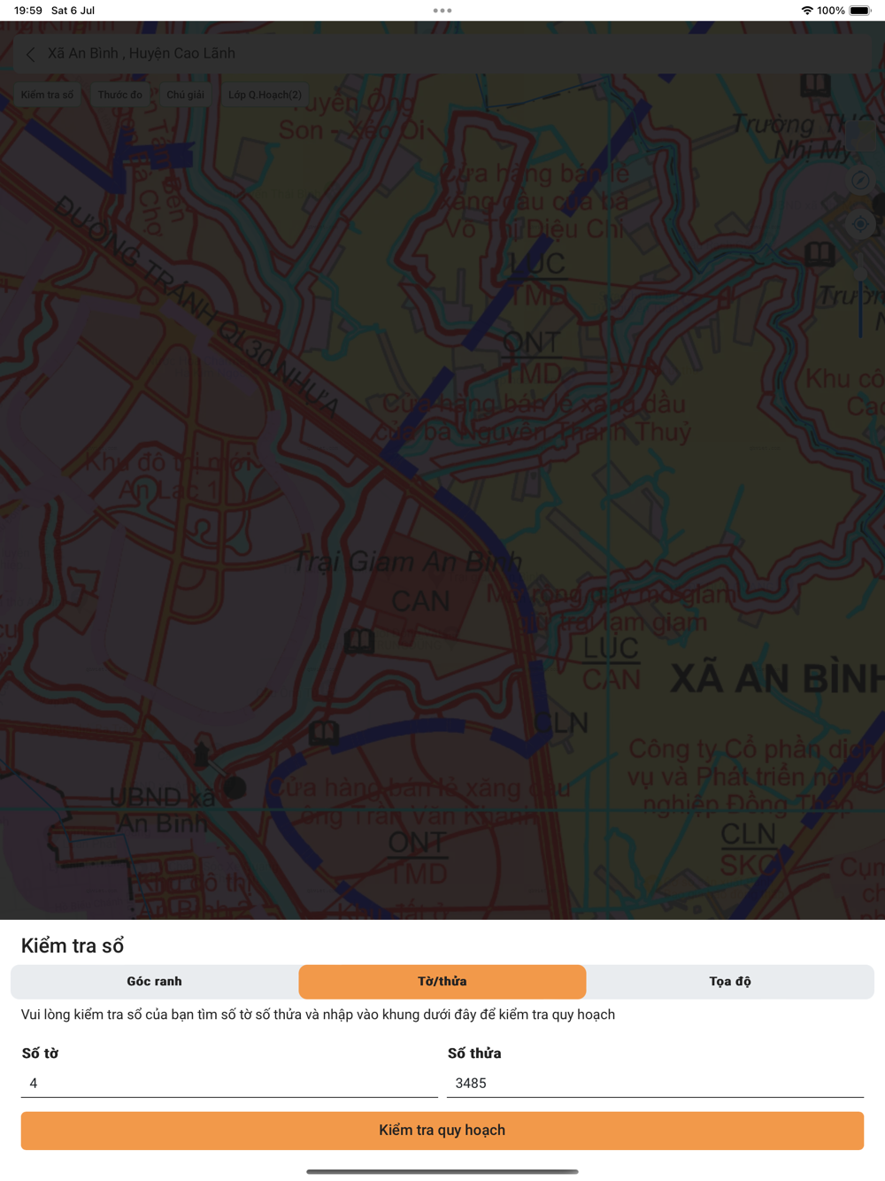 - Tra cứu thông tin quy hoạch theo số tờ - số thửa của sổ đỏ.