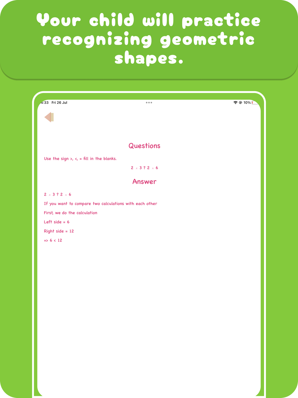 - Flexible exercises: Includes various types of exercises such as quizzes, filling in blanks, comparison signs, finding missing numbers.