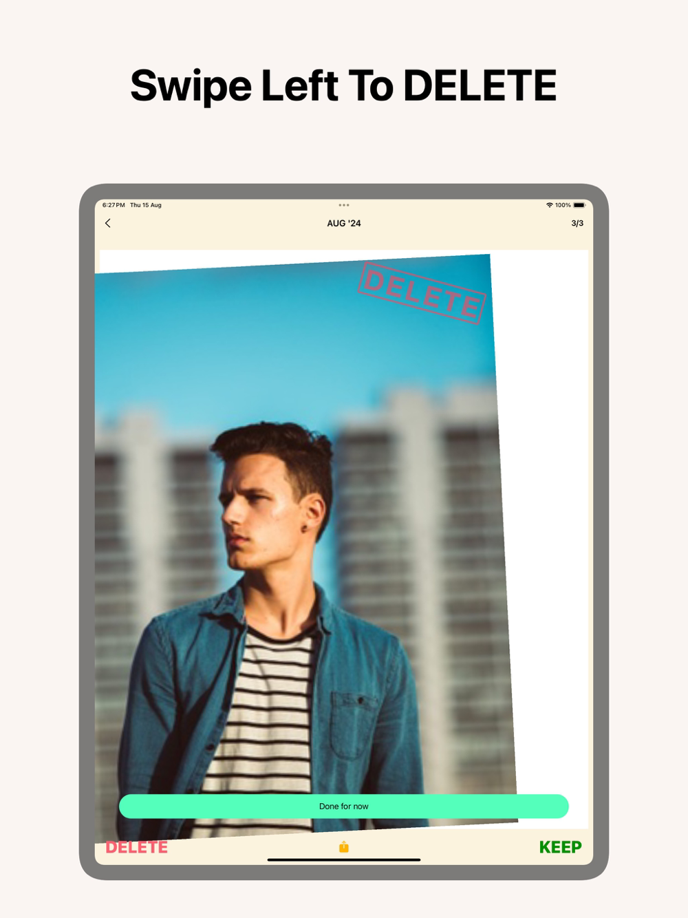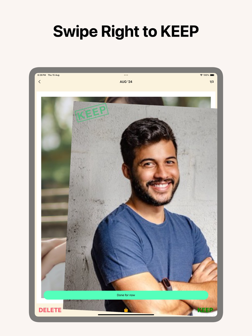 Easy Deletion Process: SwipeSnap makes it incredibly easy to delete photos. Just swipe to keep or delete, and watch your camera roll get organized in no time.