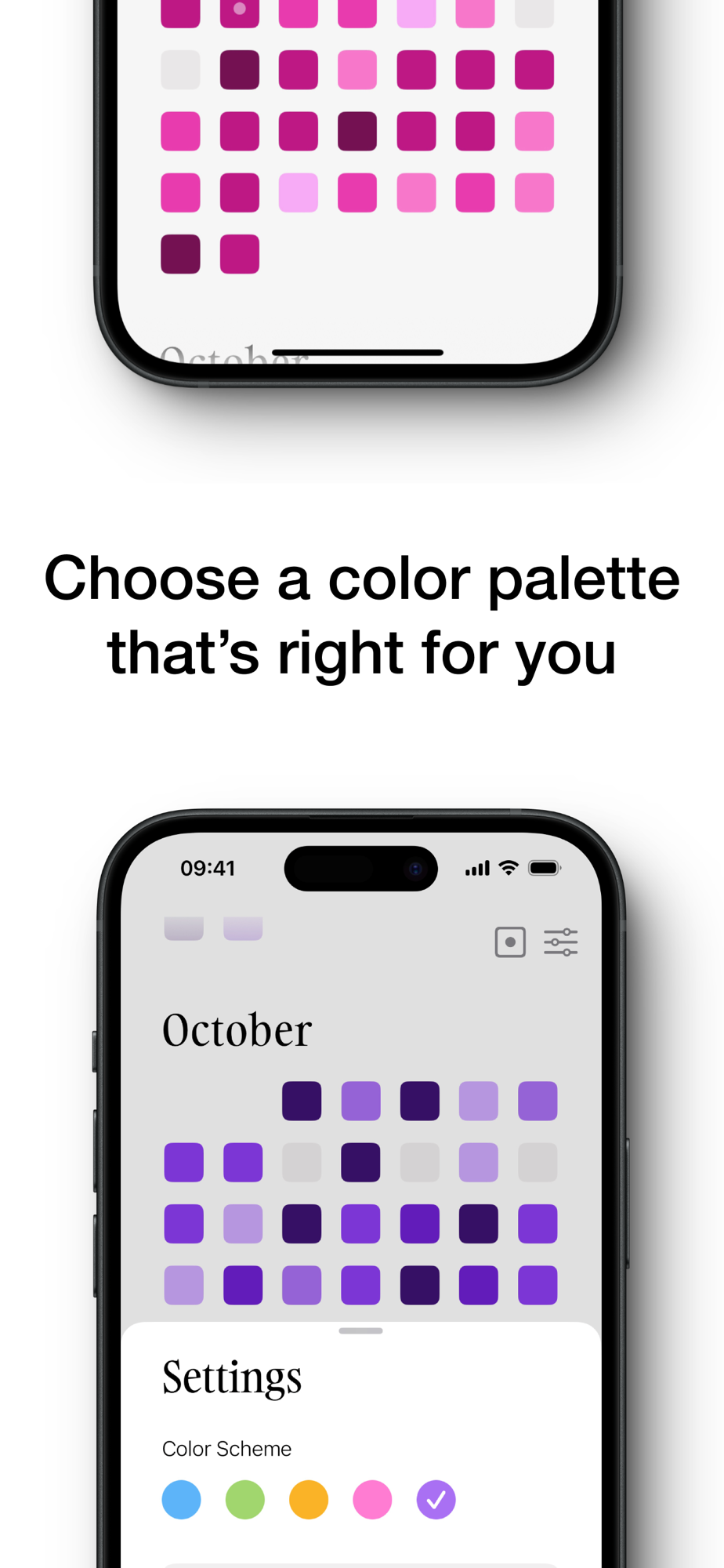Jot down your highlight of the day, mark the mood with a color and keep a visual journal over time!