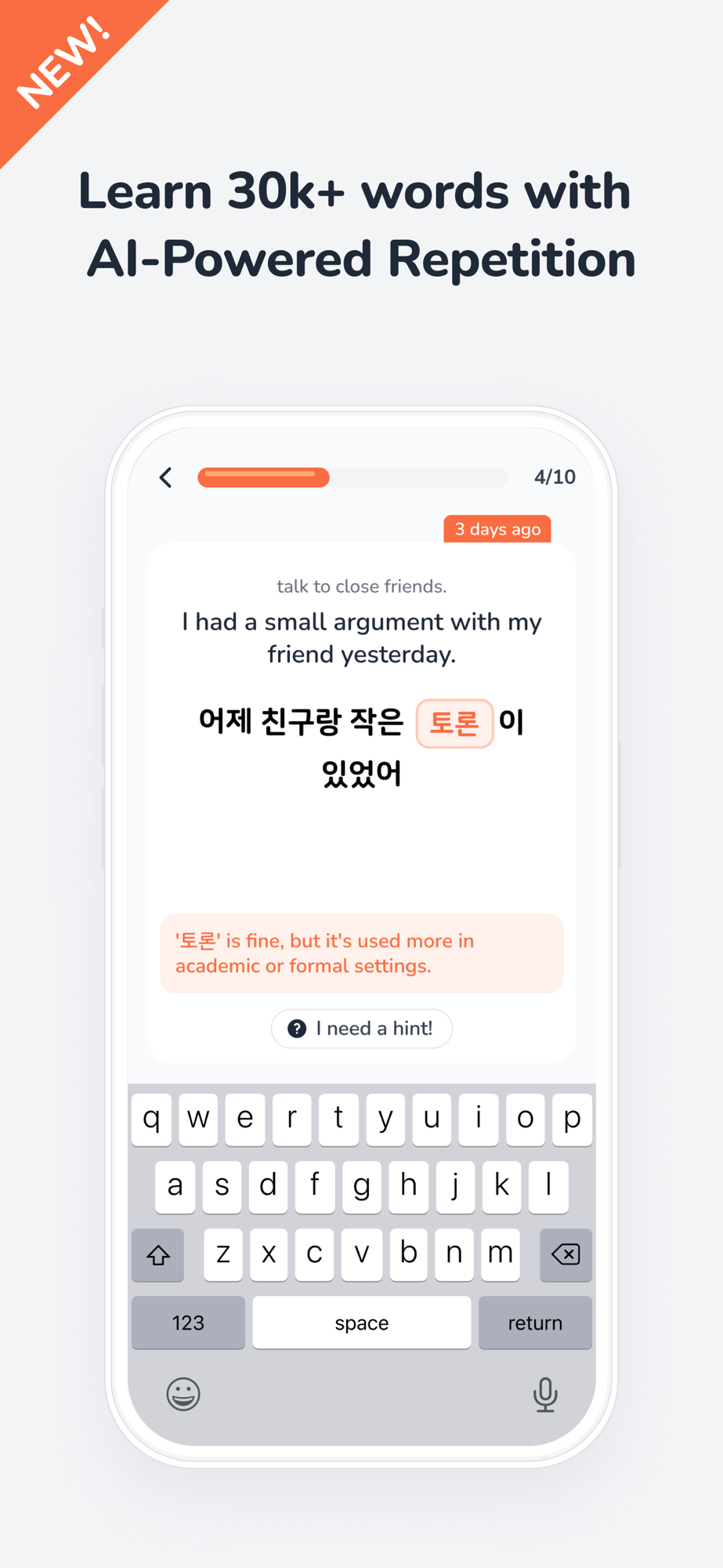 - Advanced Sentence Composition: Hone your writing skills by creating Korean sentences for specific contexts. Receive personalized feedback from our AI tutor to improve rapidly.