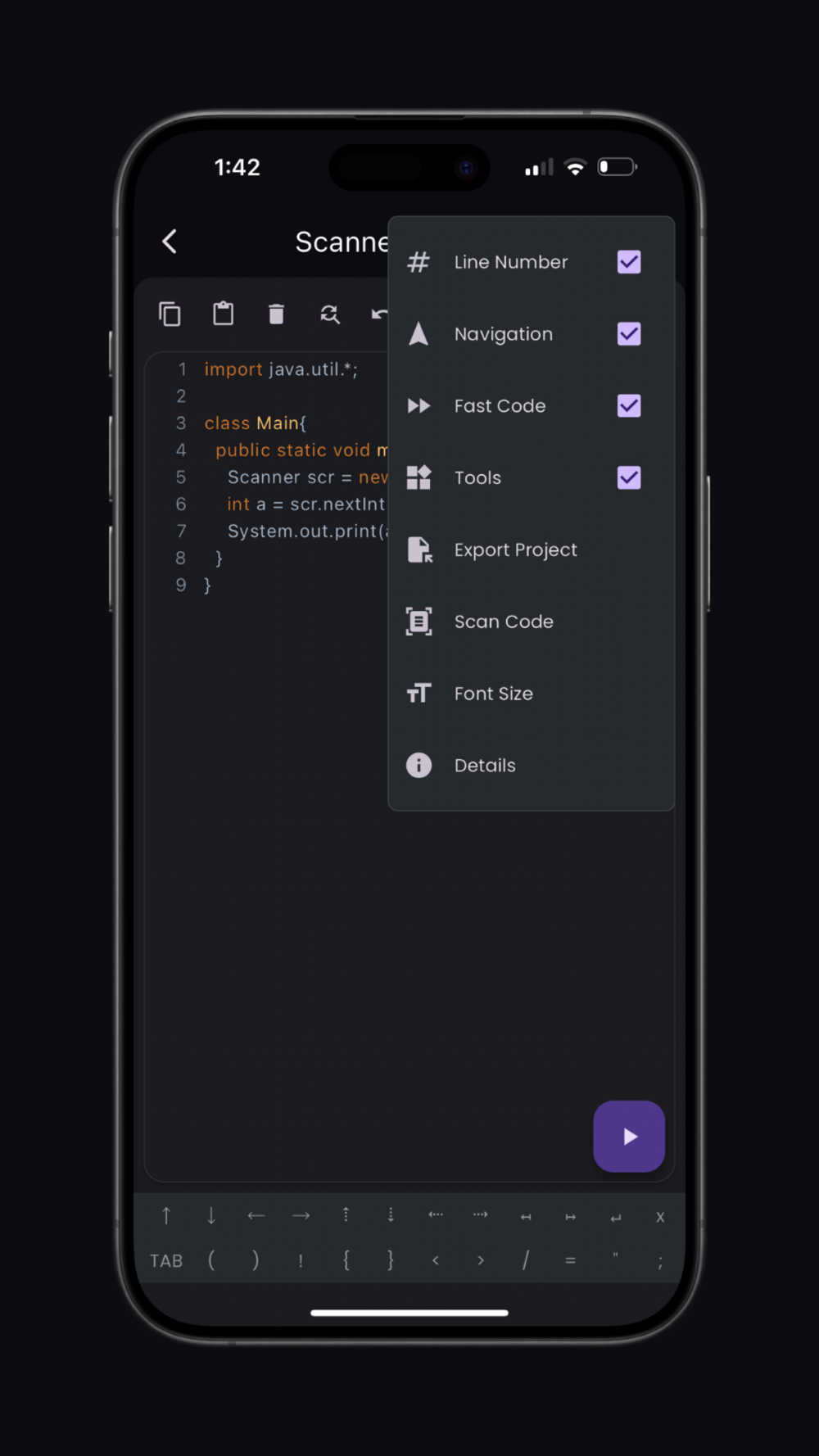Scan Code Feature: Quickly scan and import code snippets using your device's camera. Perfect for grabbing code from textbooks, whiteboards, or printed documents.