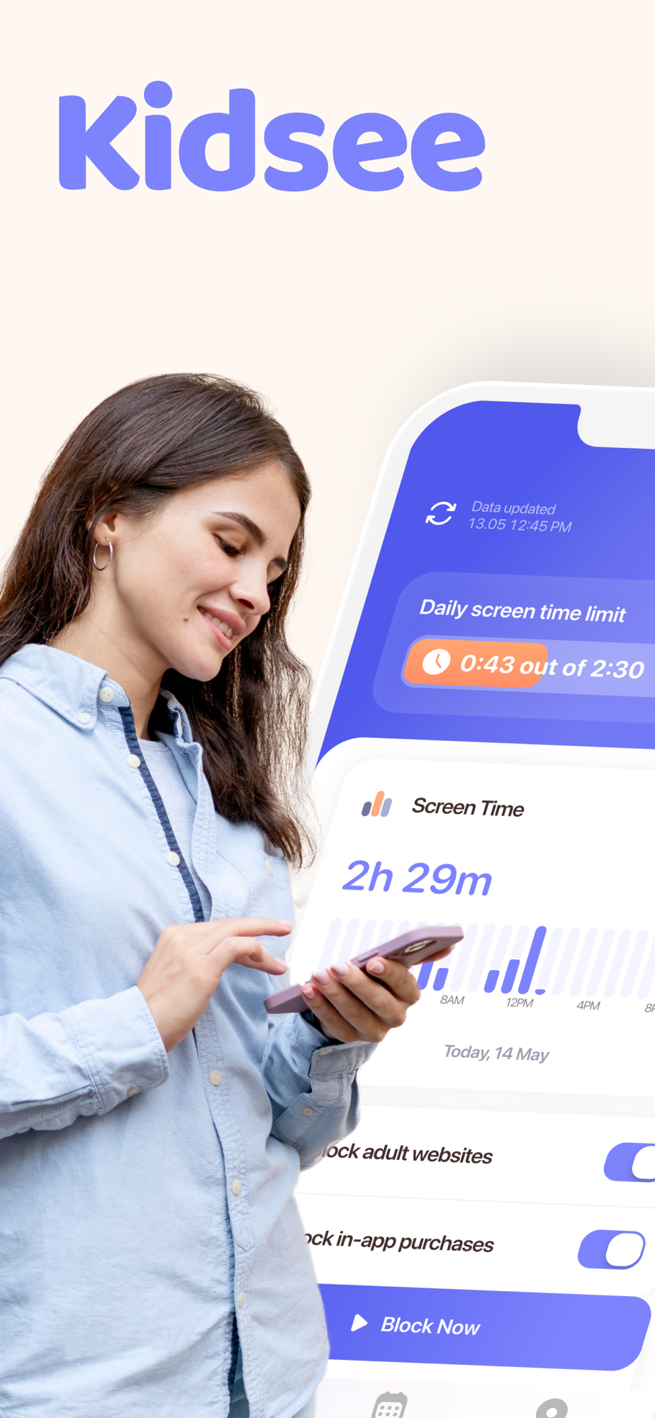 Kidsee ist Ihr vertrauensvoller Assistent bei der elterlichen Kontrolle.