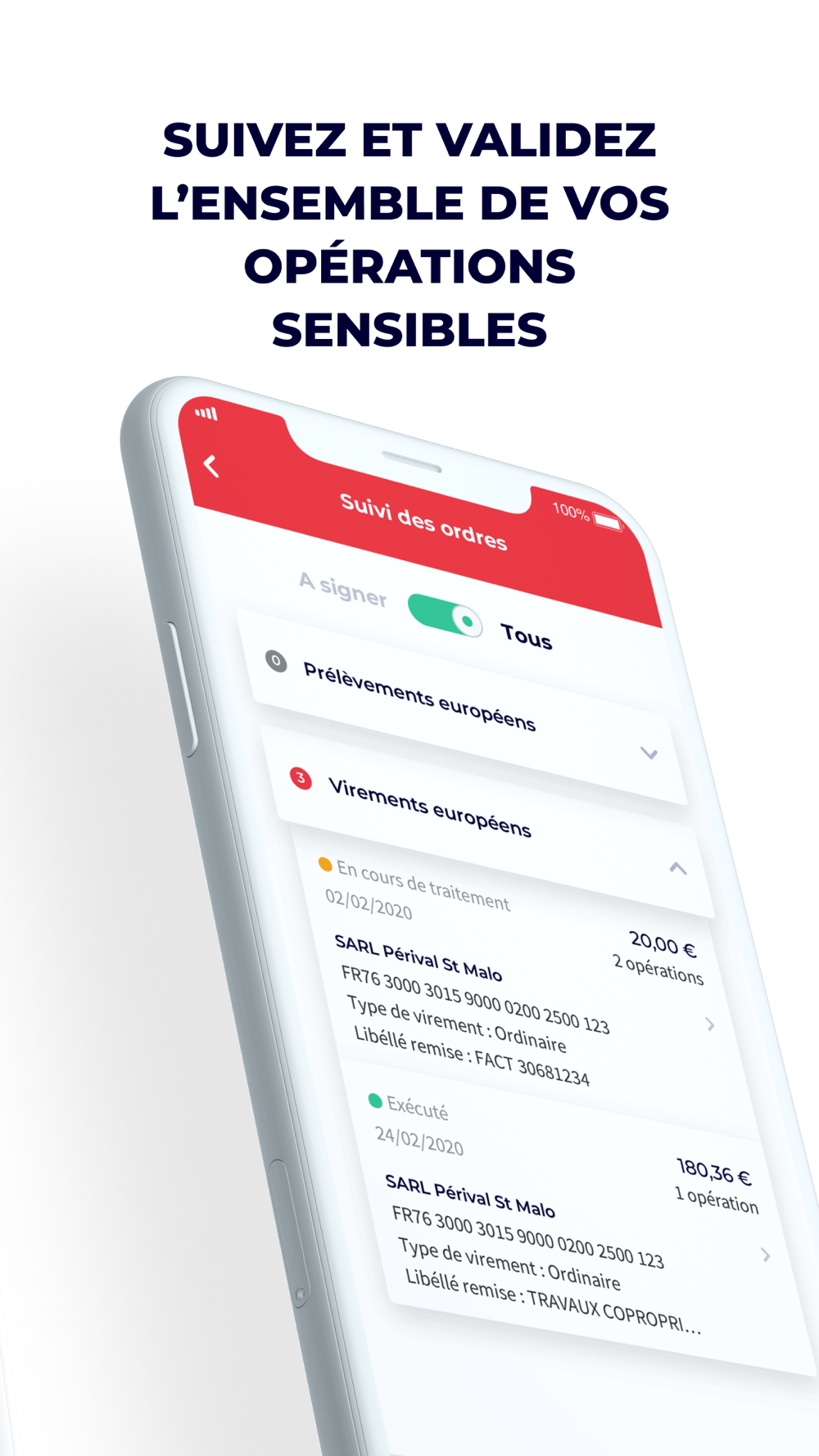 - Suivez et signez vos ordres depuis l'Appli Sogecash Net en toute sécurité grâce à notre solution de sécurité intégrée Secure Access disponible sur les stores.
