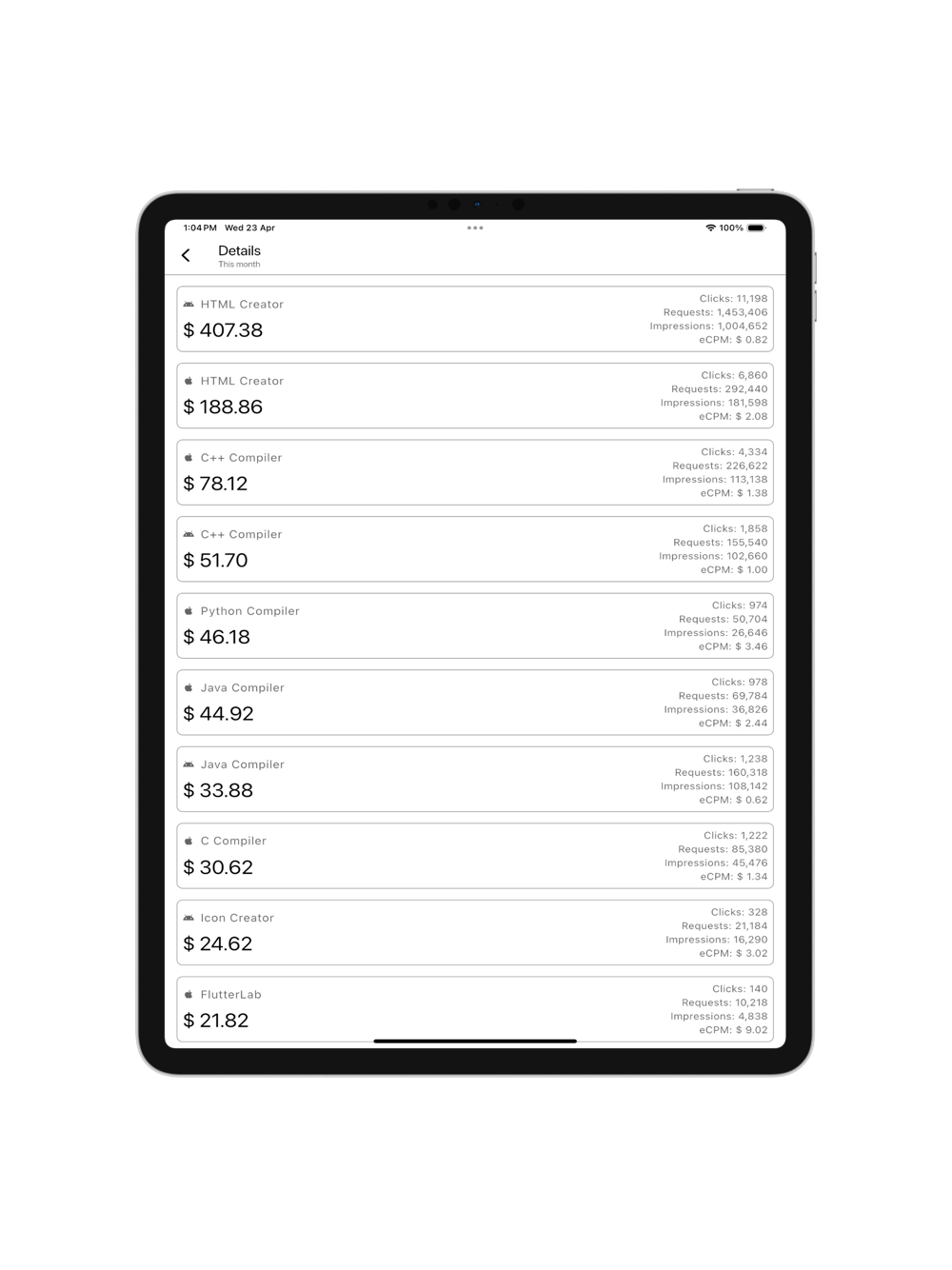 AdDash is a simple and powerful app designed to help you track and analyze your AdMob earnings with ease. Its user-friendly interface provides all the information you need to monitor your revenue effectively.