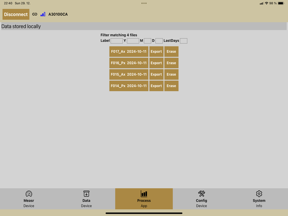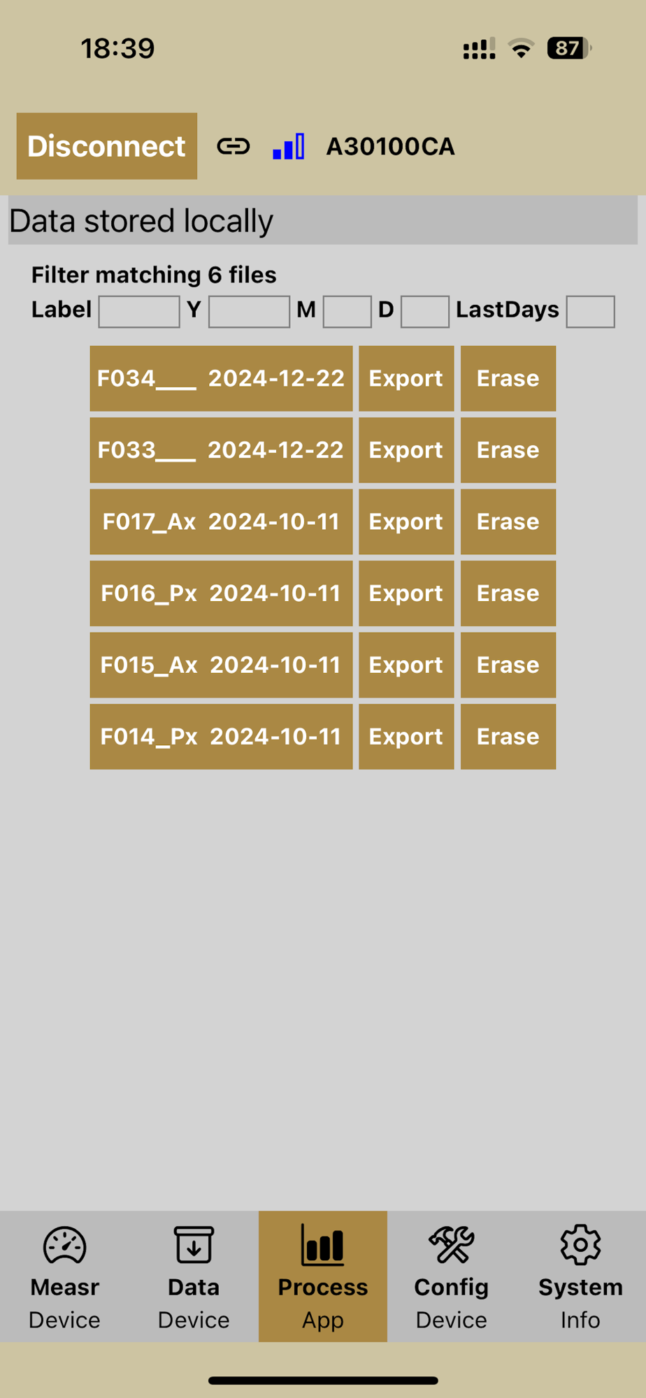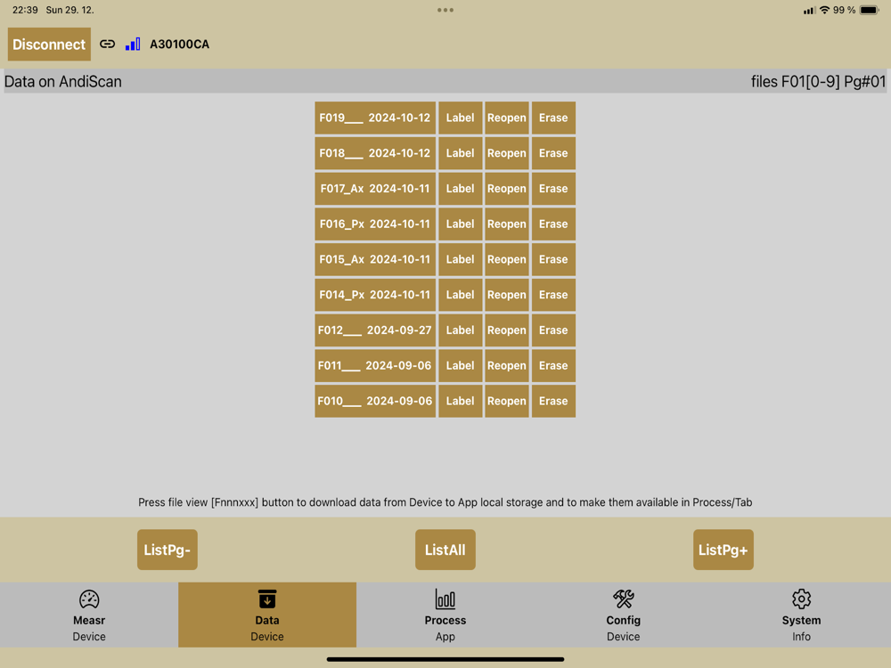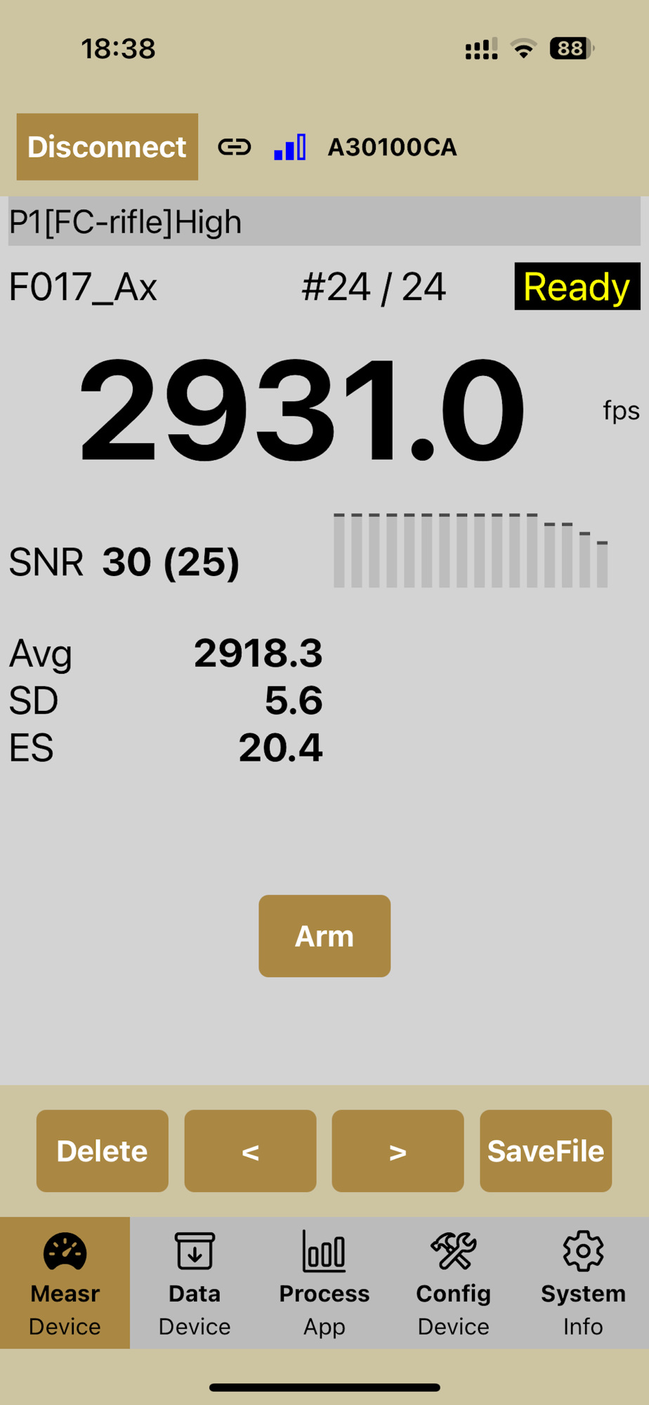 Use AndiScan app to connect to your AndiScan A3 ballistic velocity Doppler chronograph using Bluetooth Low-Energy (BLE) communication protocol. The app allows full remote control, measurement live view, data management, file listing, file view with super-easy export to other apps and/or computer (including file copy/paste), full remote configuration settings, FirmWare over-the-air upgrades, and many more features.