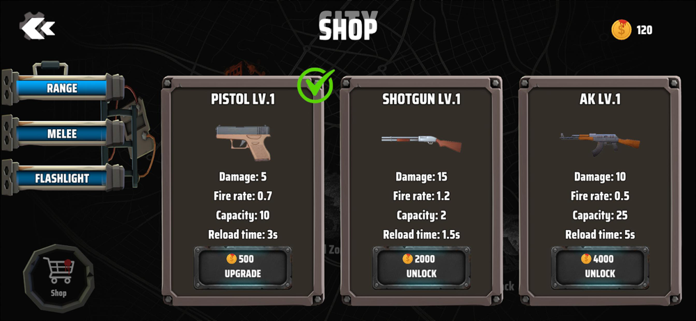 Use both ranged and melee weapons to fend off the horde. Upgrade, adapt, and find your rhythm to survive each stage of the darkness.