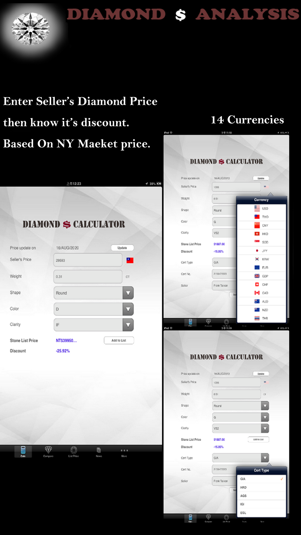 Easy to use-- Just enter the seller's price, input diamond's 4C information and you will find out how much discount offered by seller, based on New York market price.
