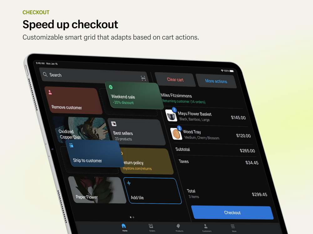 • Create fully-synced customer profiles so staff can give every customer a personal shopping experience with quick access to notes, lifetime spend, and order history.