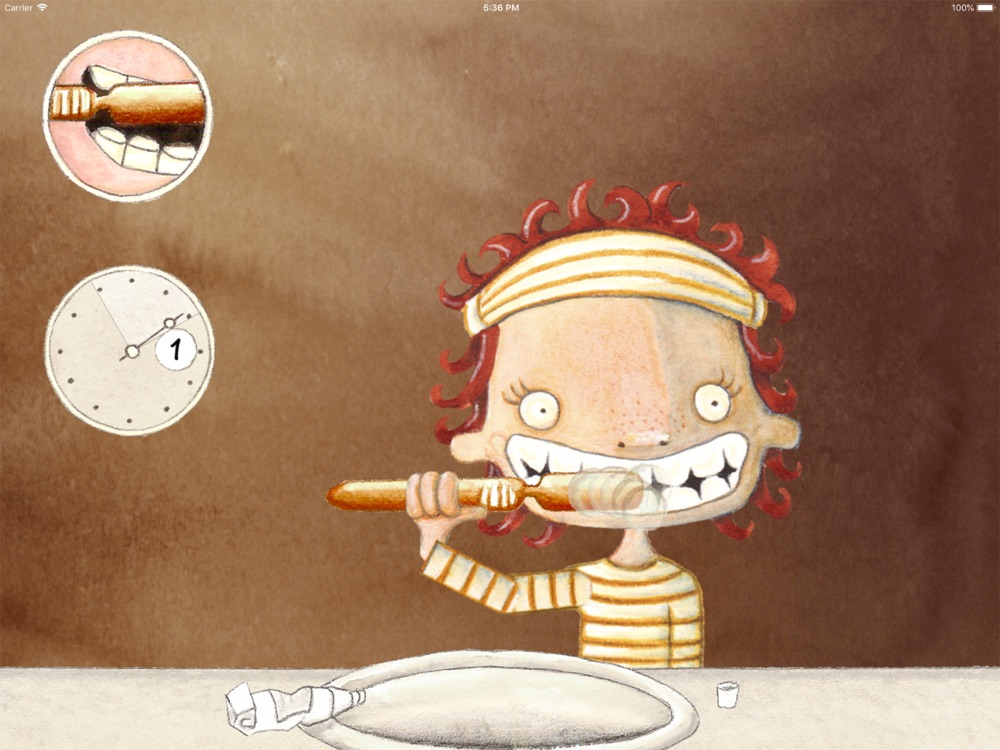 "MyTeeth" is a beautifully animated app for children ages 1 - 9 (but for teens and adults, too) that helps to establish the best possible tooth brushing routine.