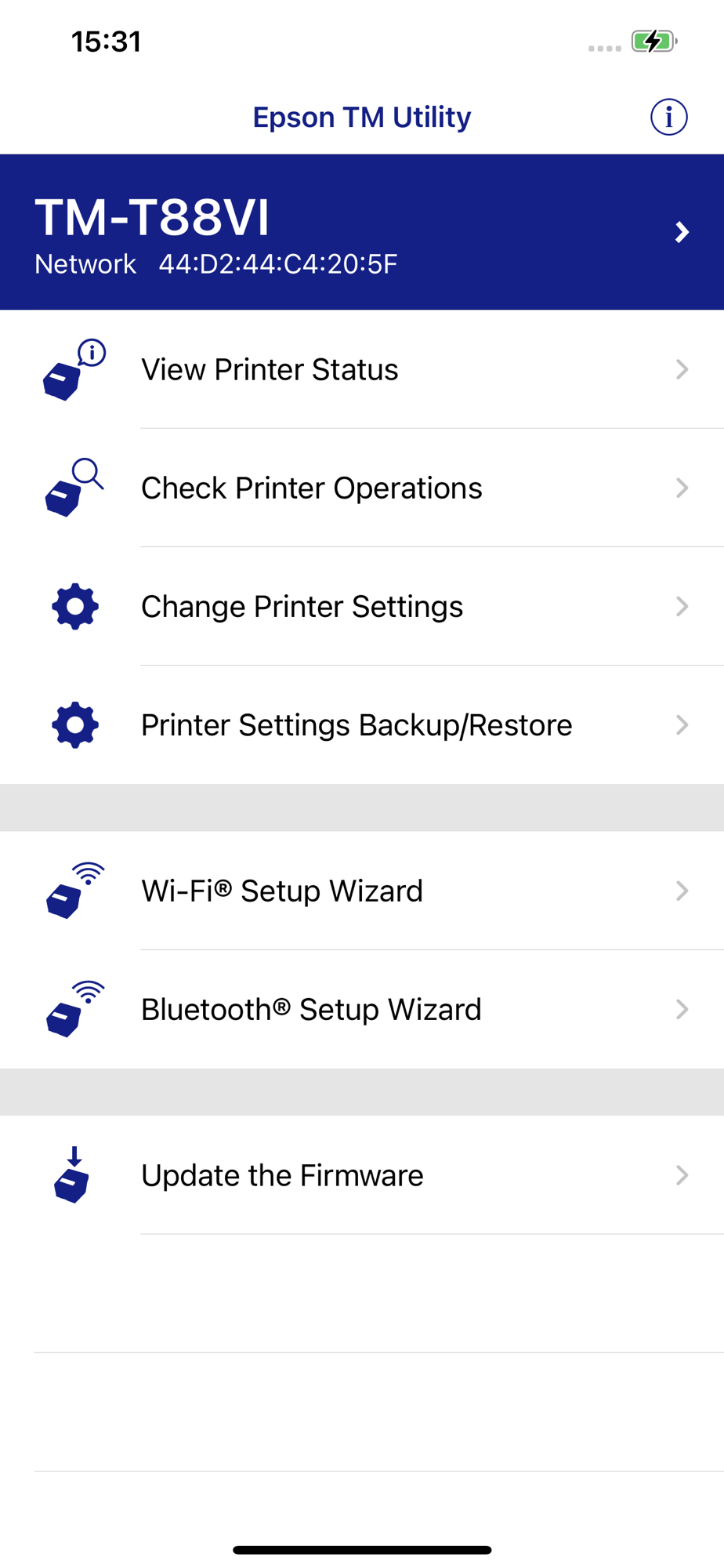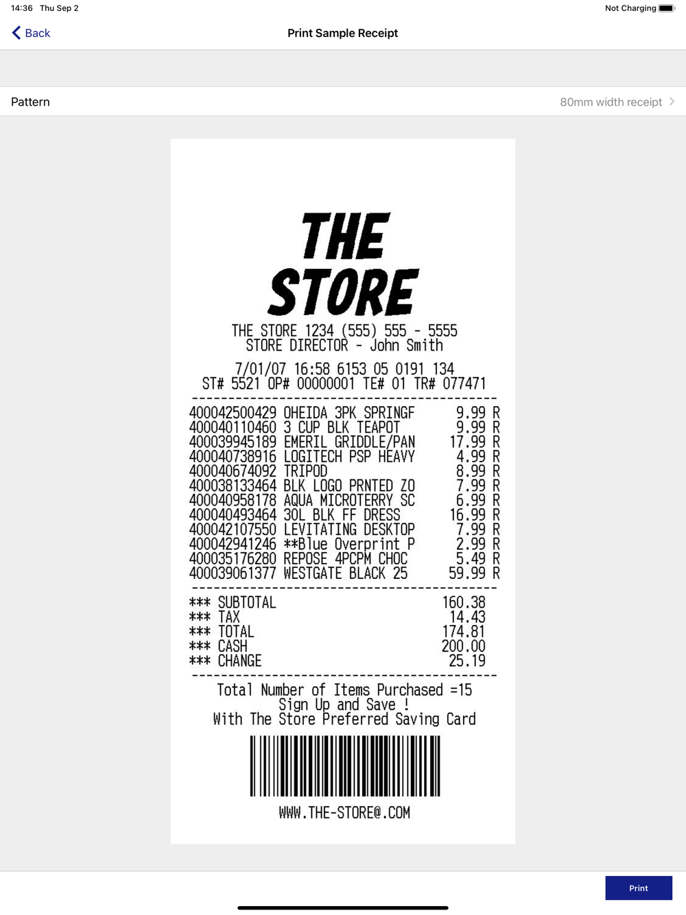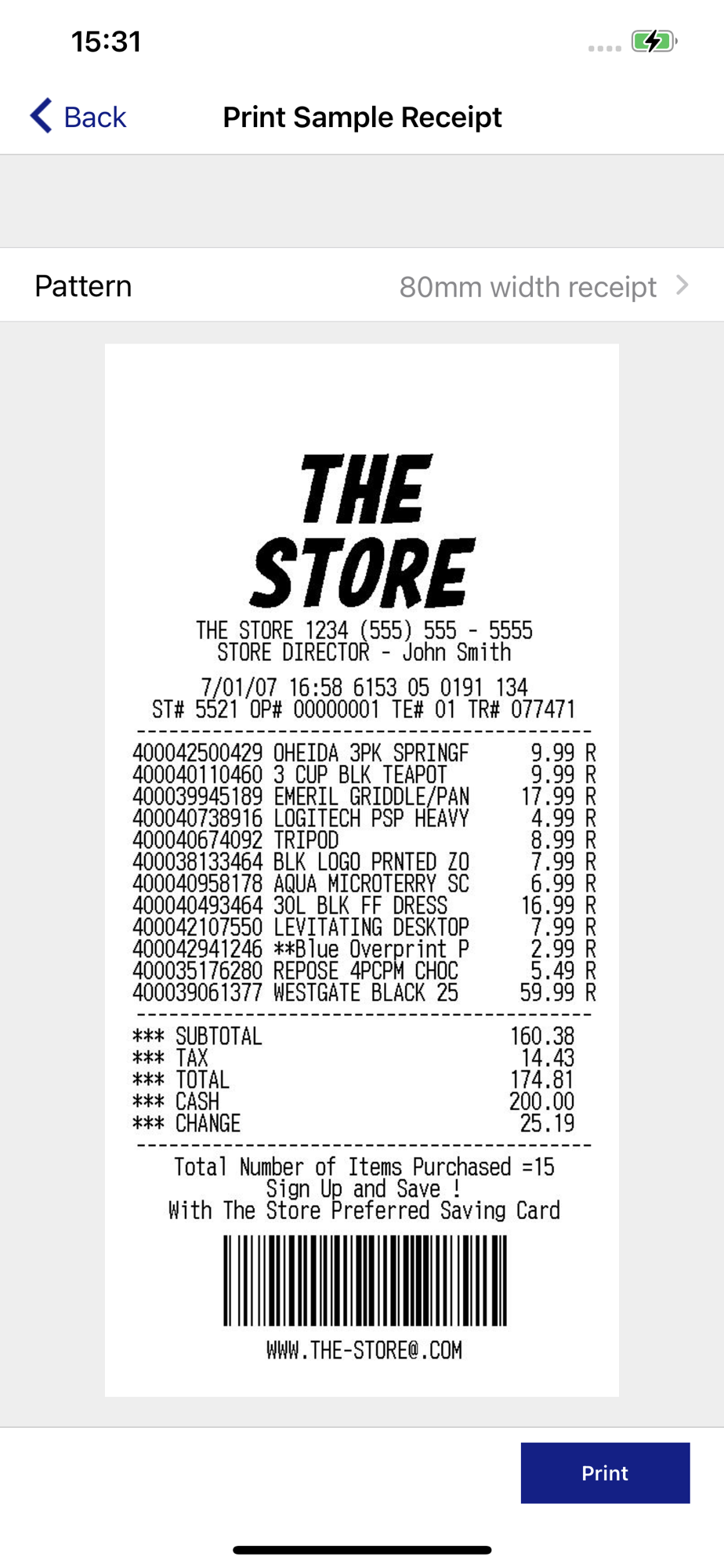 This app enables you to setup wireless connection, configure printer settings and print sample receipts from iPhone, iPad and iPod touch to a Epson receipt printer as below.