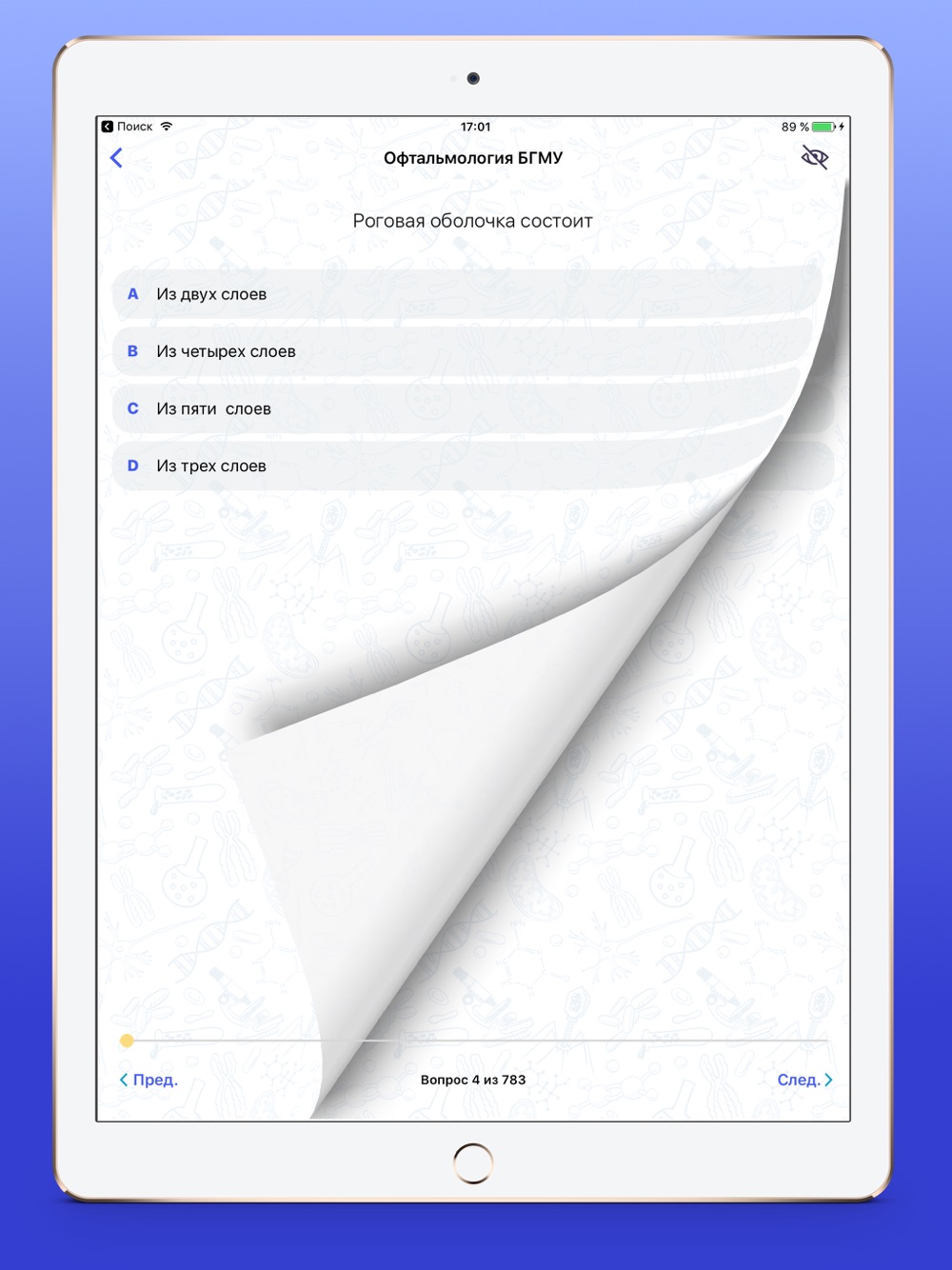 Учебный режим - в этом разделе вы сможете пролистывать вопросы, словно страницы в реальной методичке, благодаря превосходной страничной анимации. Мы добавили возможность быстро пролистывать к нужному вопросу, а также подсвечивать или нет правильные ответы.