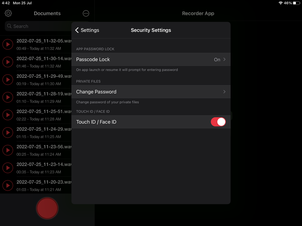 When it comes to sharing, Audio Recorder App is both public and private. You can easily upload your audio/recordings on cloud storages like iCloud, Evernote, SkyDrive, etc. Further to this you can record and share private recordings with password and encryption feature. Want to import your recordings to your Mac? - Do it with our Wi-Fi and FTP sharing feature.