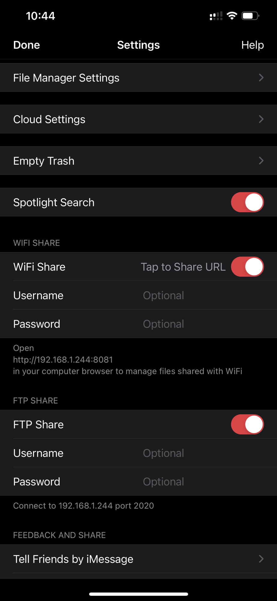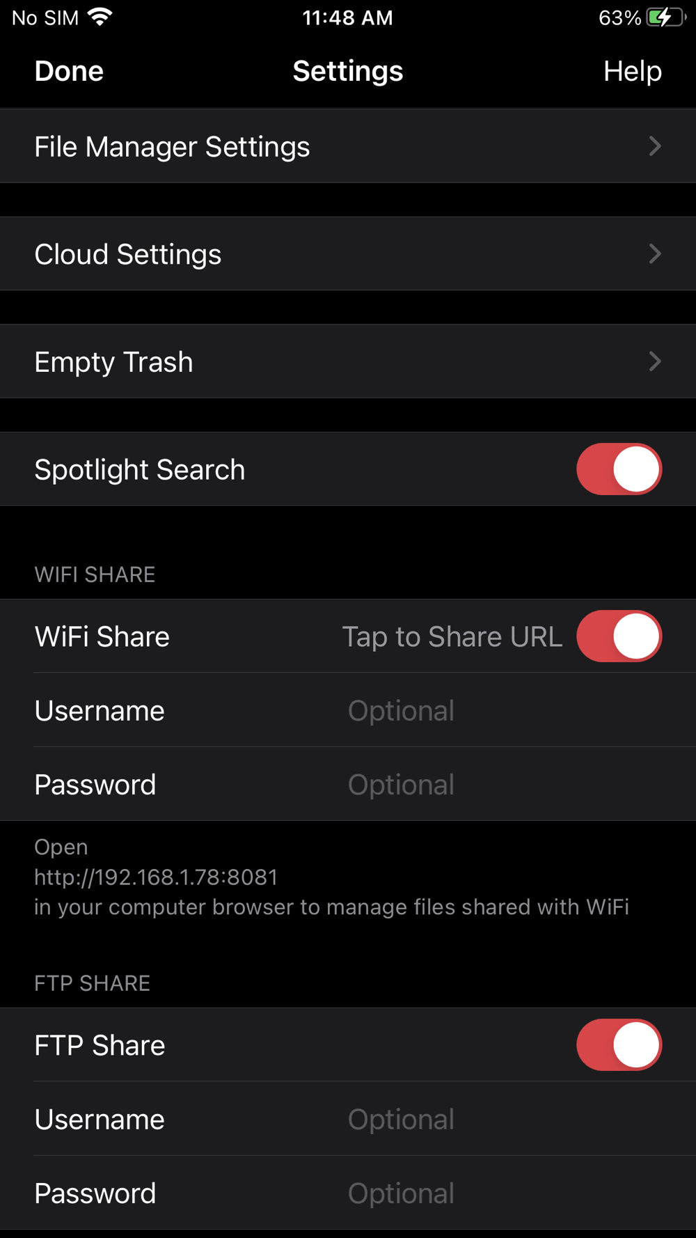 - FTP Sharing.