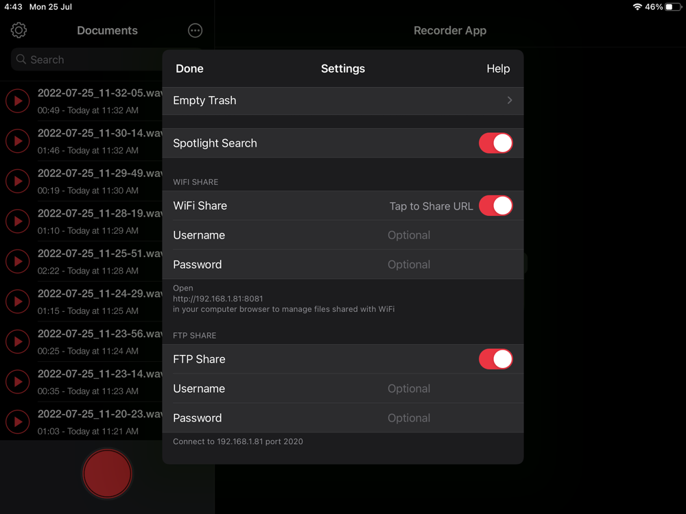 - Access Audio Recorder App from your Computer/Mac with FTP Share.