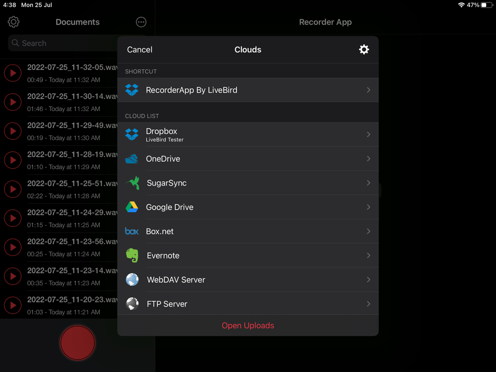 - Upload your recordings to different clouds.