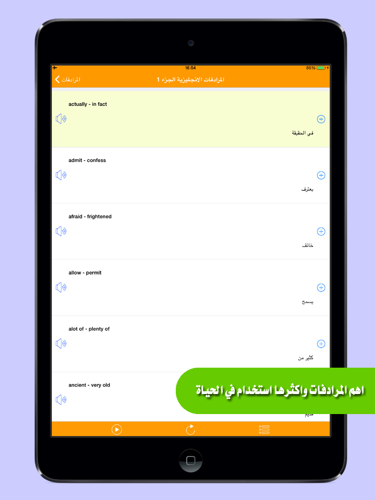 جميع معاني هذه المرادفات مترجمة الى اللغة العربية لكي يسهل حفظها