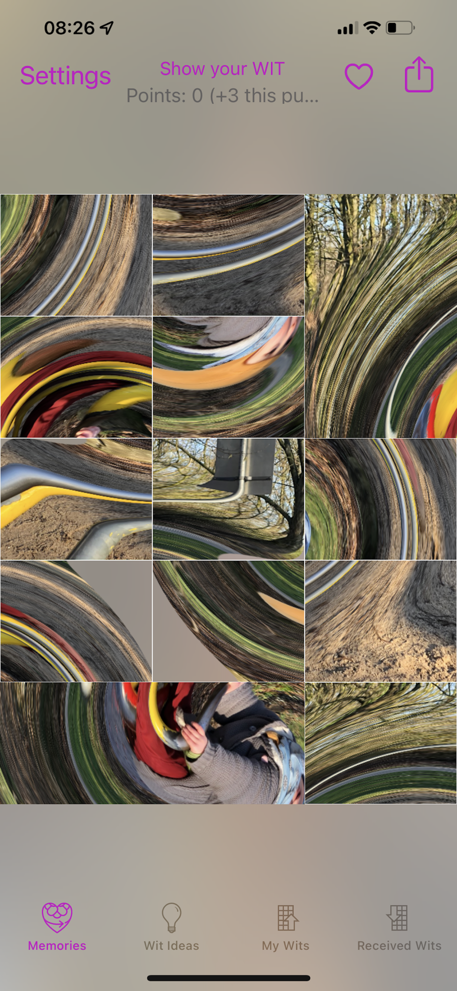 Photos are memories. WIT encrypts your photos into puzzles that have you discover your memories all over again. Play or share.