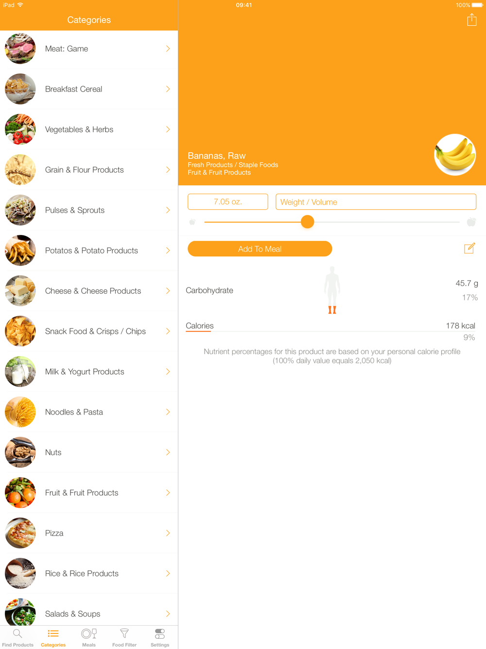 • 40,000+ food items sorted into 40 organized, easily searchable categories such as Cereals, Noodles & Pasta, Pastry, Eggs, Grains & Flour Products, Meats, etc.