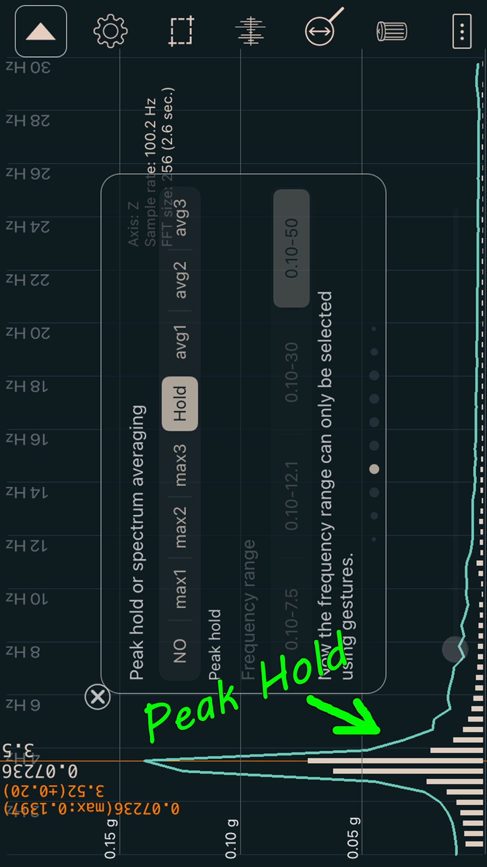 BE SURE TO READ THE EXAMPLES OF THE VIBRATION SPECTRUM ANALYSIS AT THE APPLICATION WEB SITE (usefulmobileapps.com).