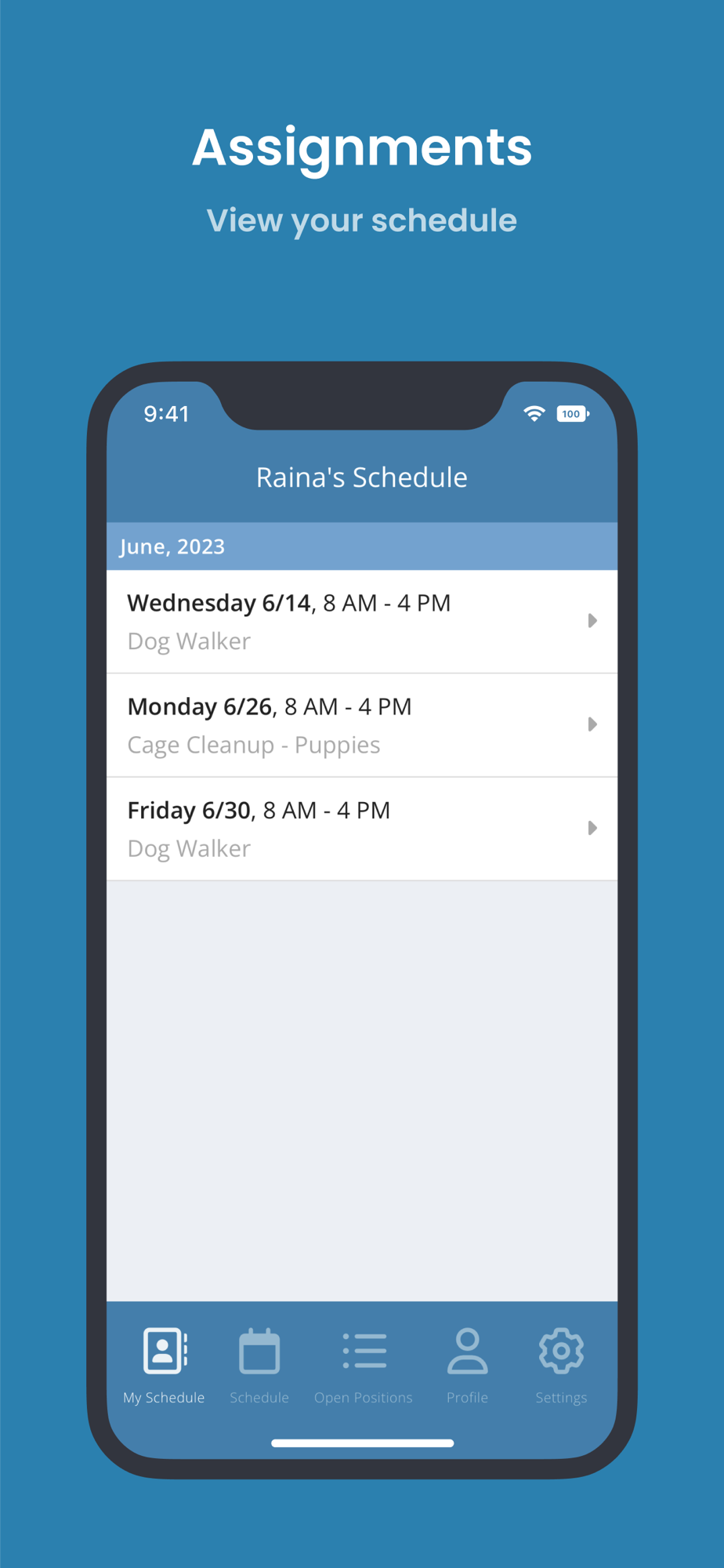 App for volunteers using Rotunda Software's Volunteer Scheduler Pro.