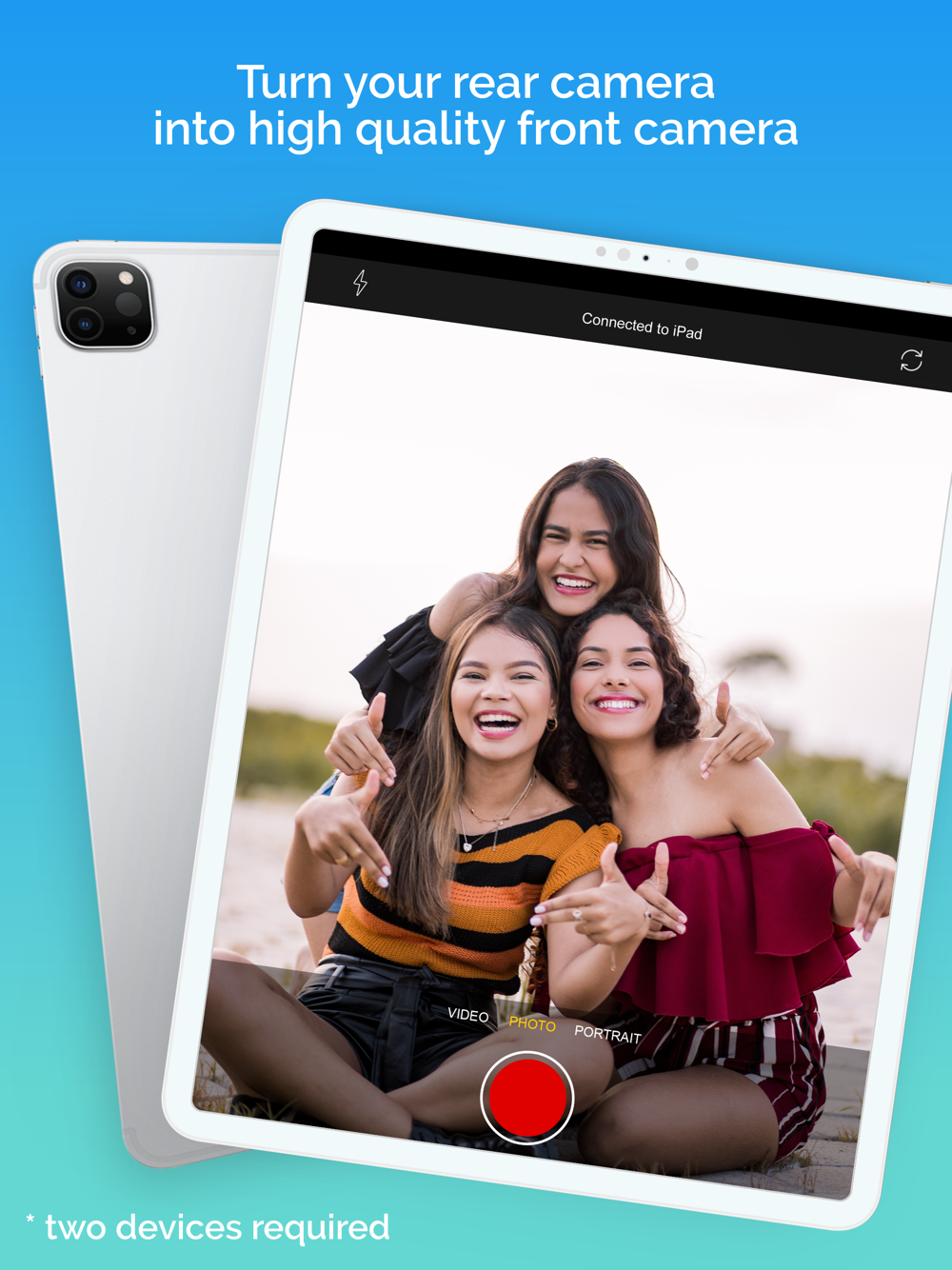 Important: this app requires two iOS devices - one is used as camera, another one displays live view and allows to take pictures and videos remotely.