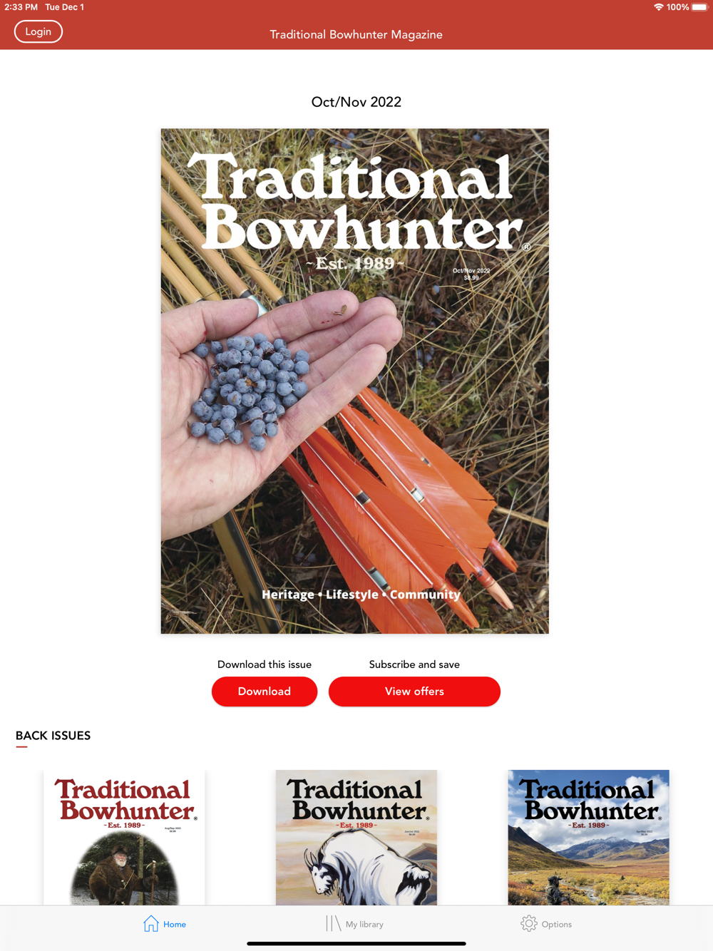 This is a free app download. Within the app users can purchase the current issue and back issues.