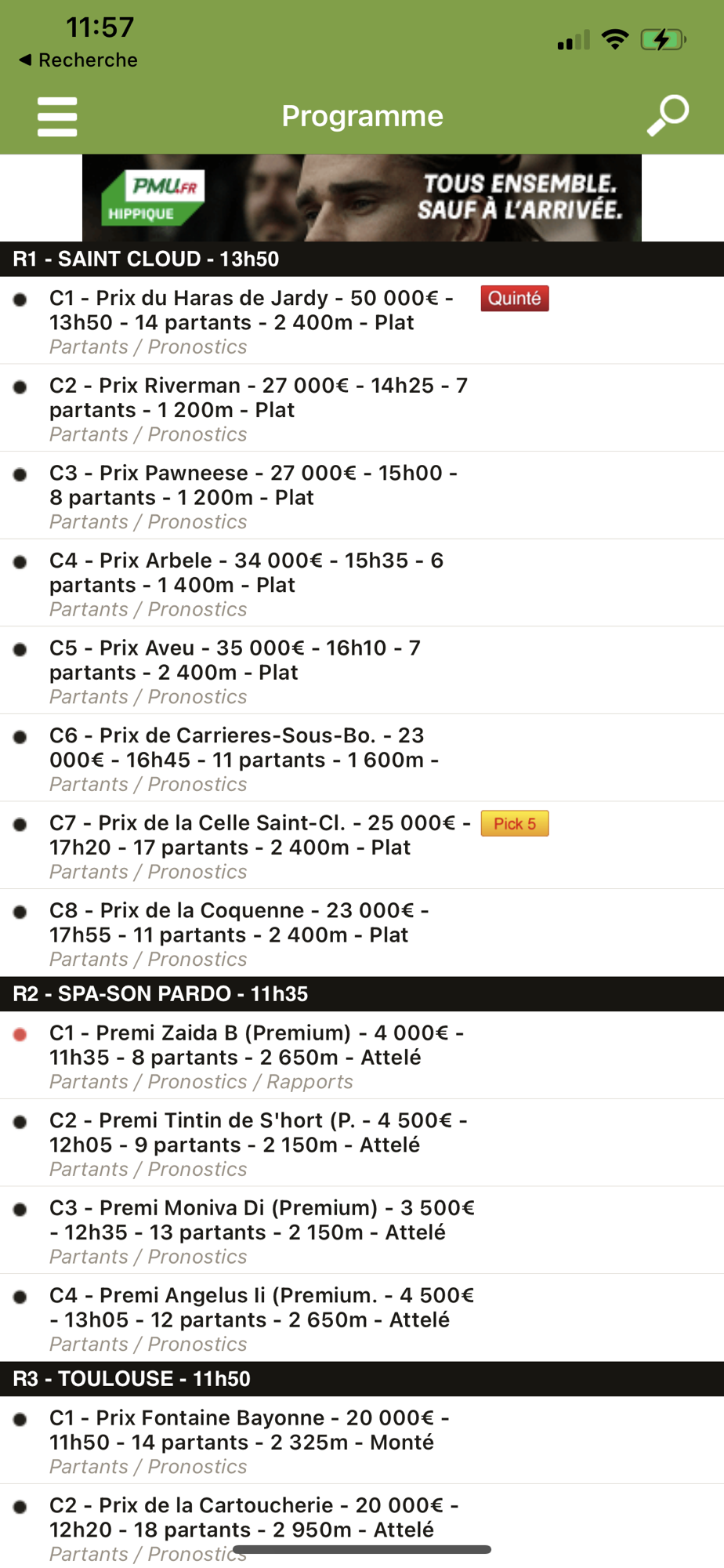 - Programmes des courses PMU d’hier, d’aujourd’hui et de demain