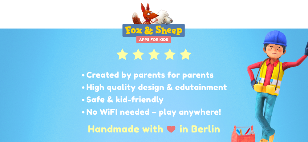 We are a Studio in Berlin and develop high quality apps for kids at the age of 2-8 years. We are parents ourselves and work passionately and with a lot of commitment on our products. We work with the best illustrators and animators around the world to create and present the best apps possible – to enrich the lives of our and your kids.