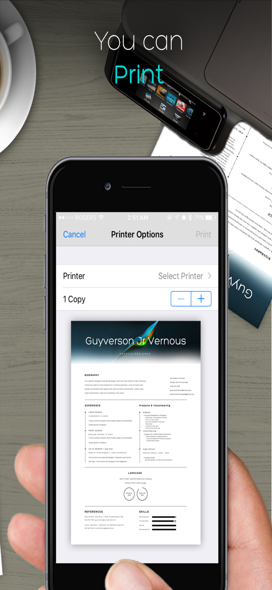 Print your extracted text with any local printer that has AirPrint capabilities. Select your default page size: US Letter, US Legal, Business Card and Receipt.