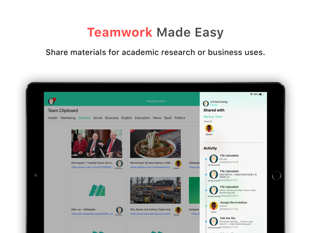 • Directly share highlighted Web Markups and annotations to your team
