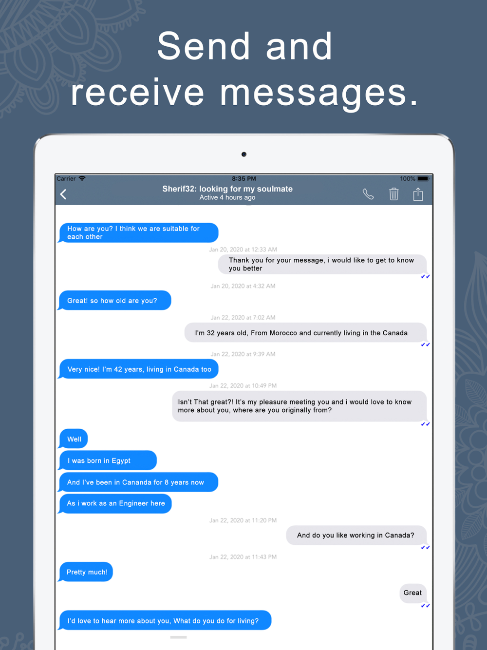 • مراقبة لجودة التطبيق وإختيار الأعضاء الجادين فقط. خلافا لباقي مواقع الزواج، فلن تجد في موقعنا أعضاء يستخدمون صور المشاهير، صور الزهور و الأطفال