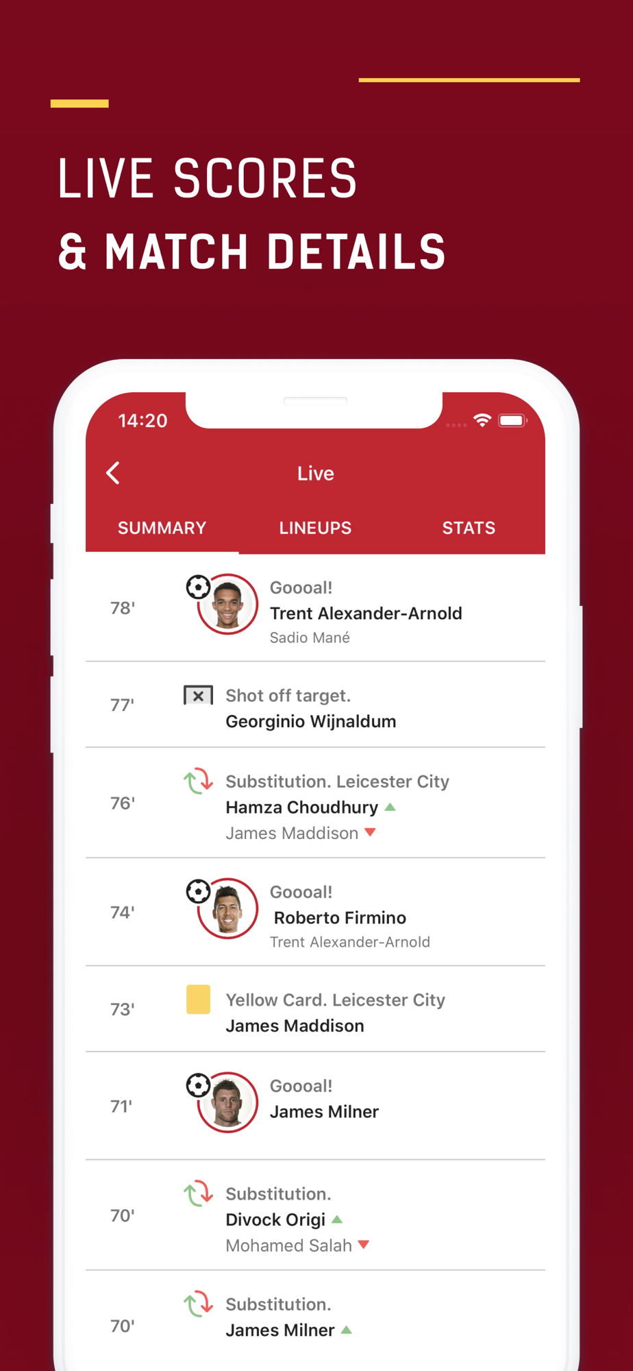 Get everything about the club in an instant! From the latest news and results to the best editorial articles, LIVE match commentary, game schedule and goal notifications - all the information important for a true LFC fan!
