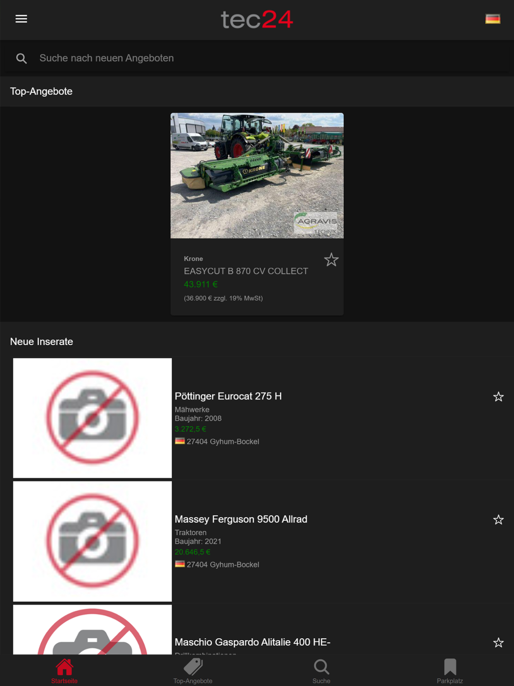 tec24 ist ein Marktplatz für gebrauchte Traktoren und Landmaschinen im Internet. 20.000 Landmaschinen von über 300 Landtechnikhändler sind übersichtlich in 13 Kategorien unterteilt von Traktoren über Erntetechnik bis zu Obst- und Weinbautechnik. Auf tec24 findet jeder Landwirt die passende Maschinen für den landwirtschaftlichen Einsatz.