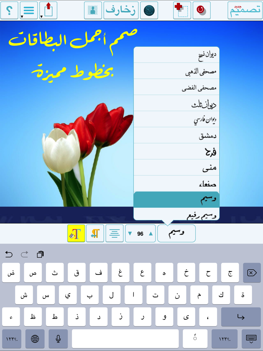 Create and design in a few simple steps beautiful posts on Facebook and Instagram to share with your friends and loved ones or even put on your business page. You can create your own design using our award wining, unique Arabic calligraphic fonts, and enhance your design with many choices of beautiful arabesque decorations. Easily upload your favorite pictures and images to use them as part of your design, and much more.