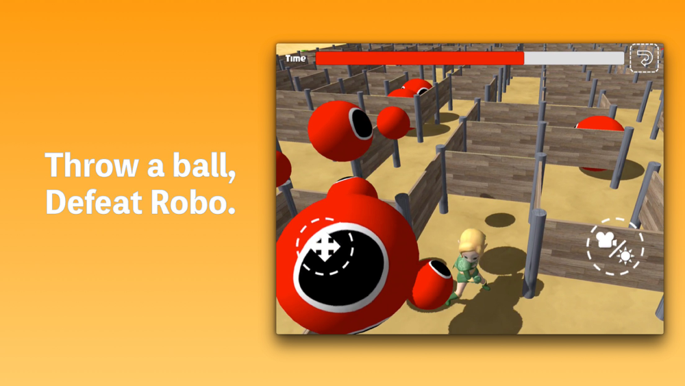 In this maze, Robo will block the way. At that time, throw a ball by double tap the right stick.
