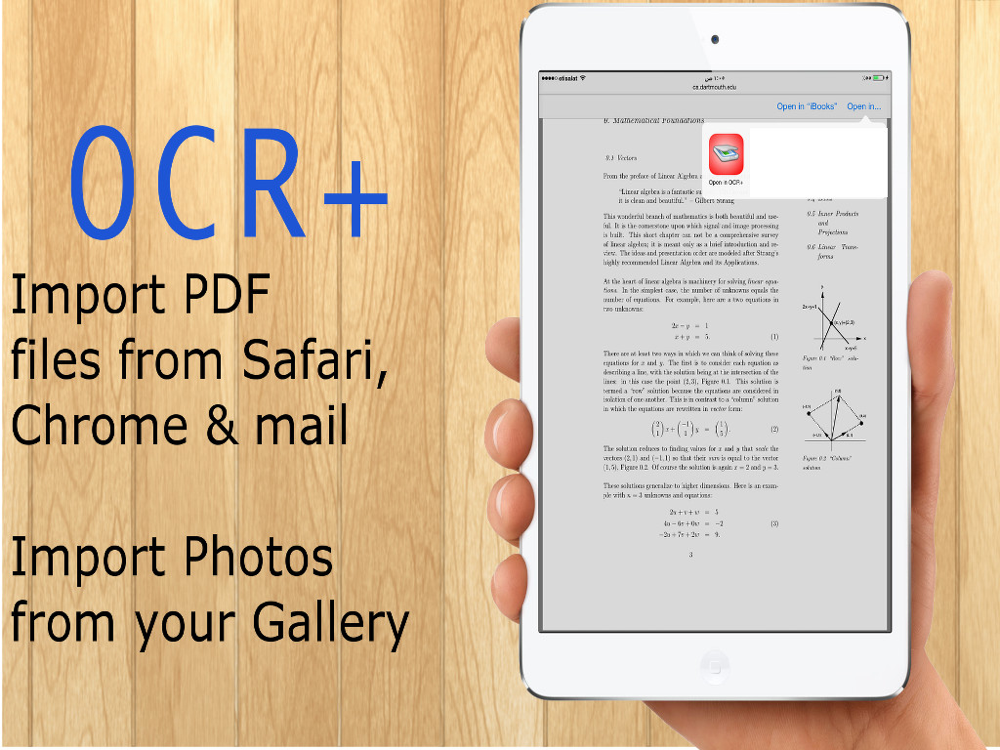 Import the PDF file from safari via “open in” OCR+(Or from mail message).