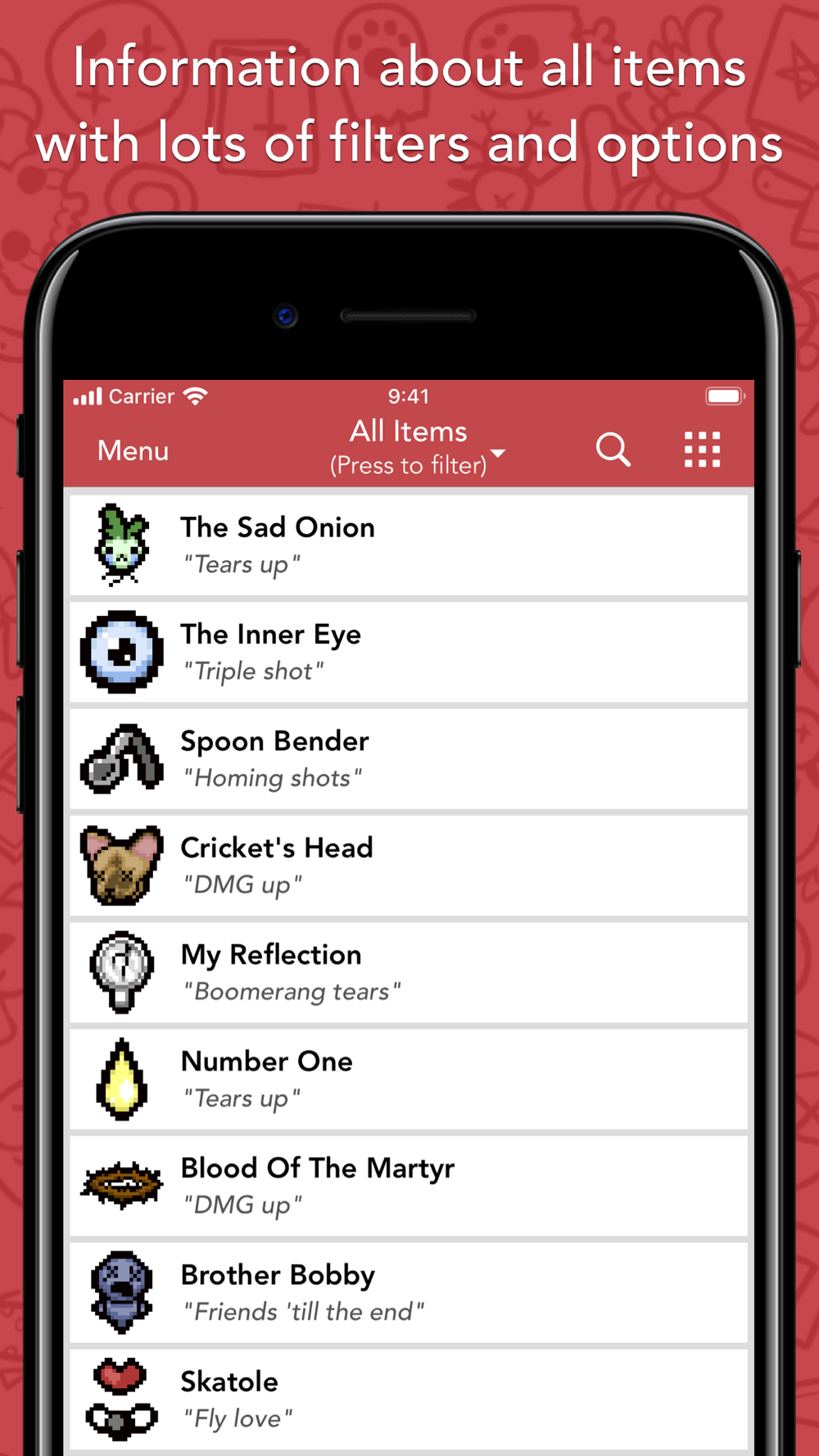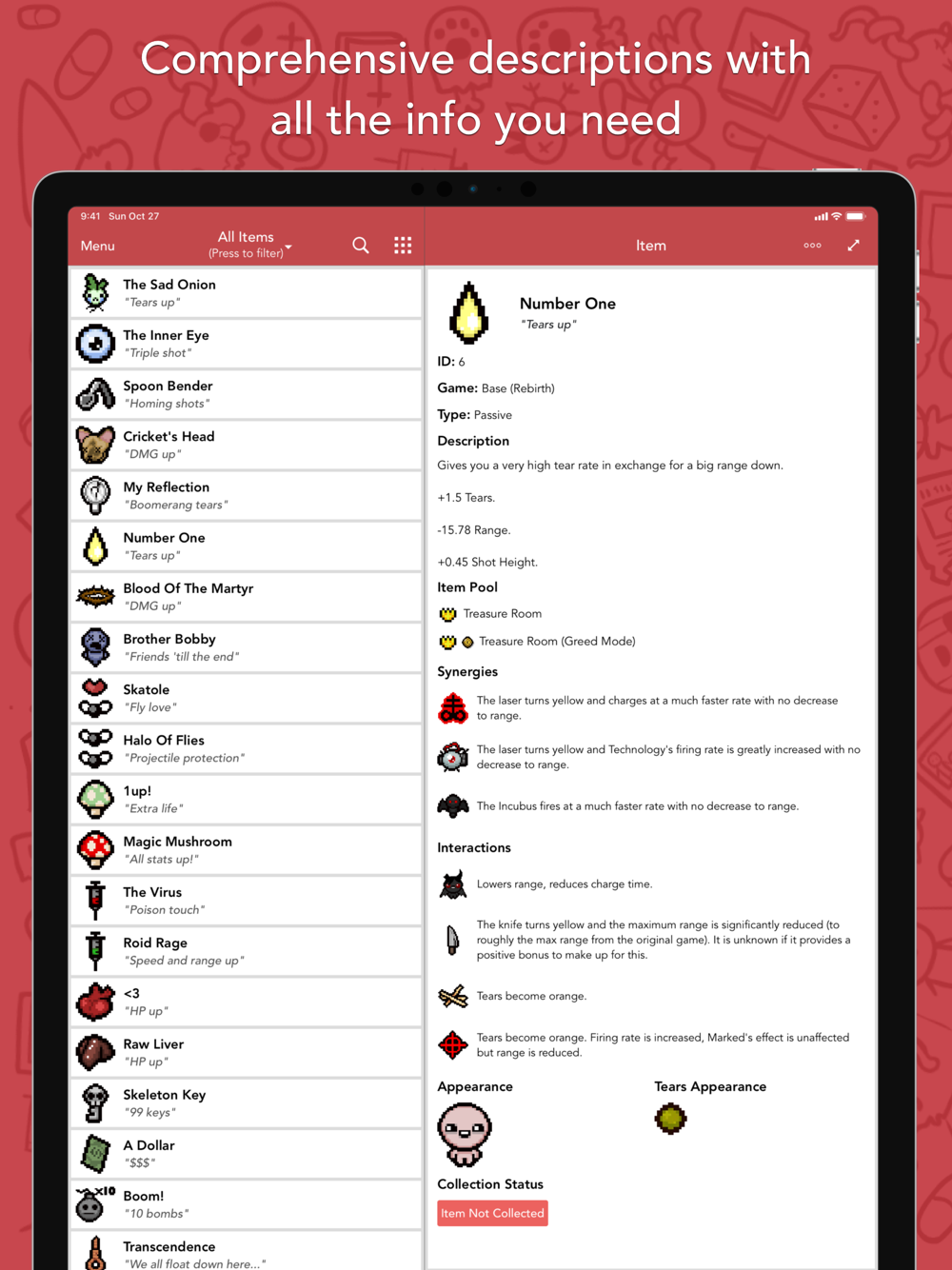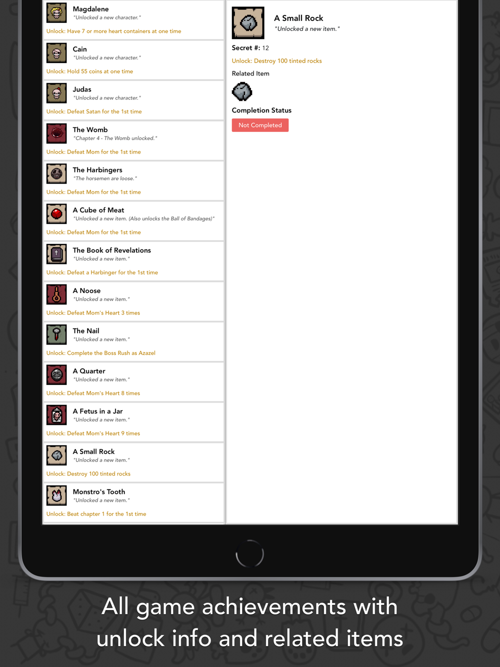 This app is not associated, affiliated, endorsed, sponsored, or approved by Edmund McMillen or Nicalis Inc.