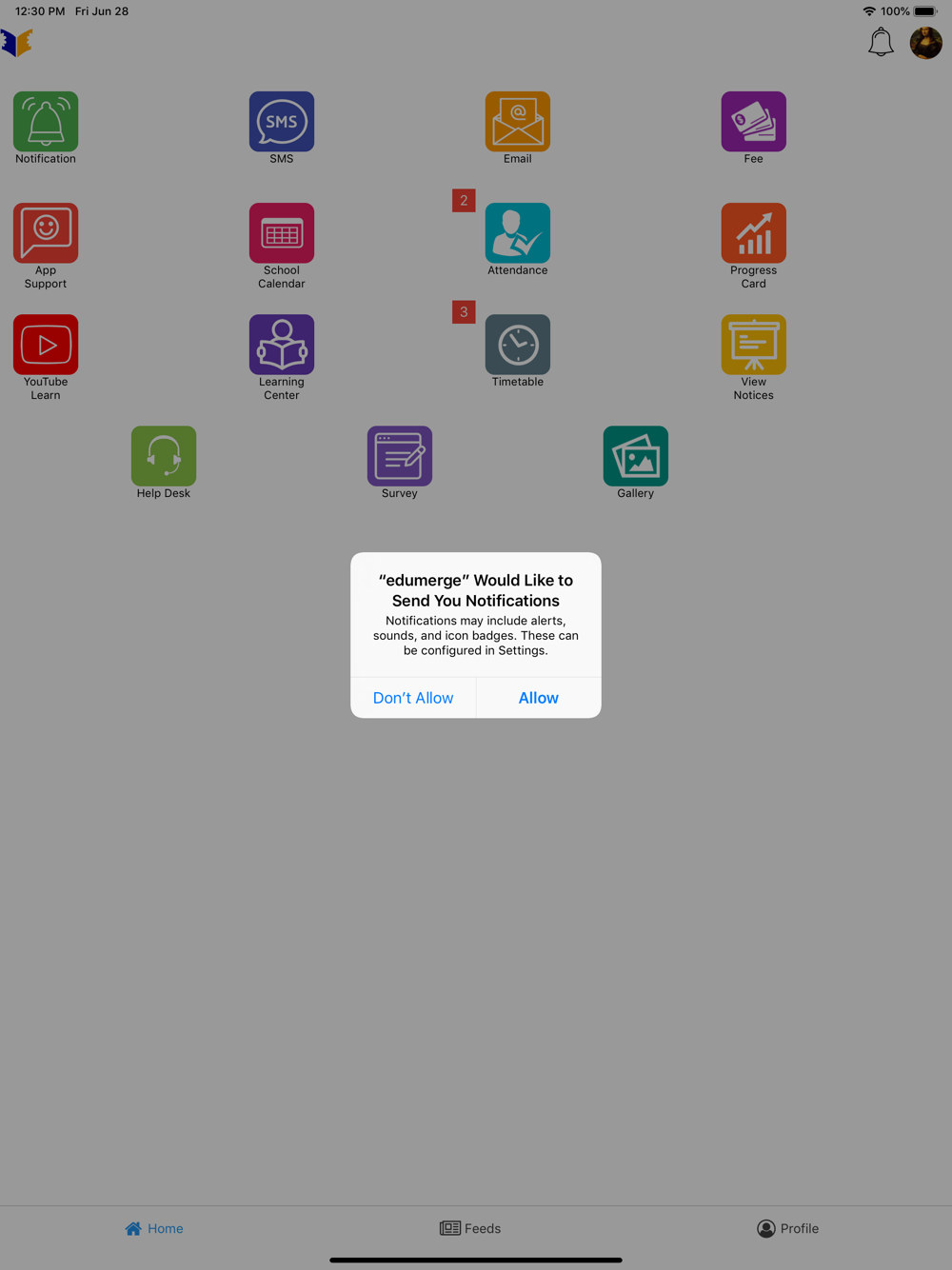 - Date-wise view of all the notifications received from the Institution.