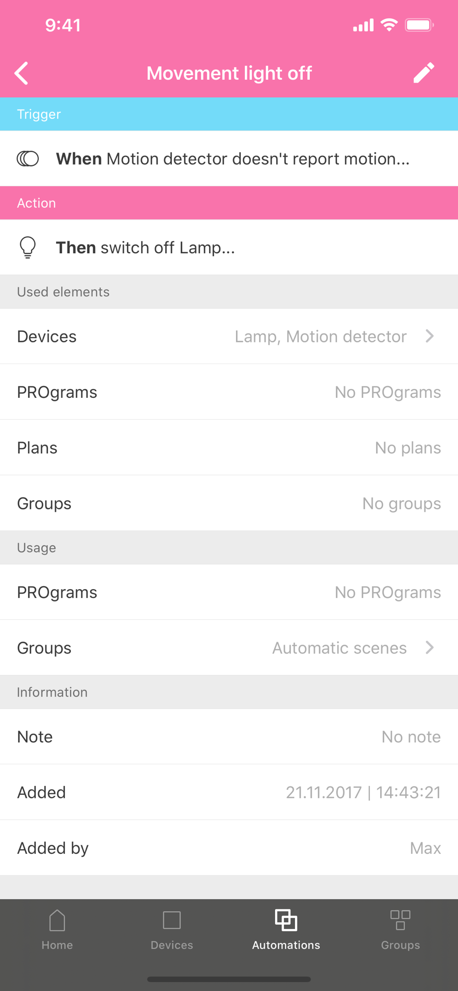 Via intuitive if-then rules, recurring scenes can be easily automated.