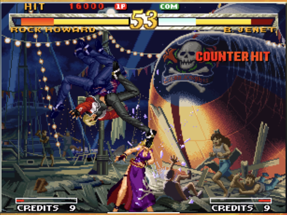 "GAROU: MARK OF THE WOLVES" renews the series with the "T.O.P. SYSTEM", a revolutionary game mechanic that can be set anywhere on the character's lifebar and gives access to a unique attack and significantly increases the character's hitting power. Moreover, the "JUST DEFENDED" mechanic offers a multitude of bonuses to the player if he successfully blocks his enemy's attacks at the last moment. Finally, the "BREAKING" feature allows to cancel specific special moves to other for impressive combos and damage.