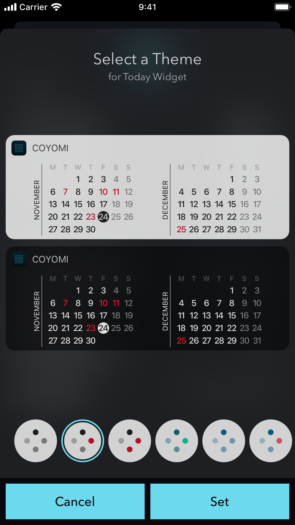 Coyomi is a tiny monthly calendar for the Apple Watch and Today Widget.