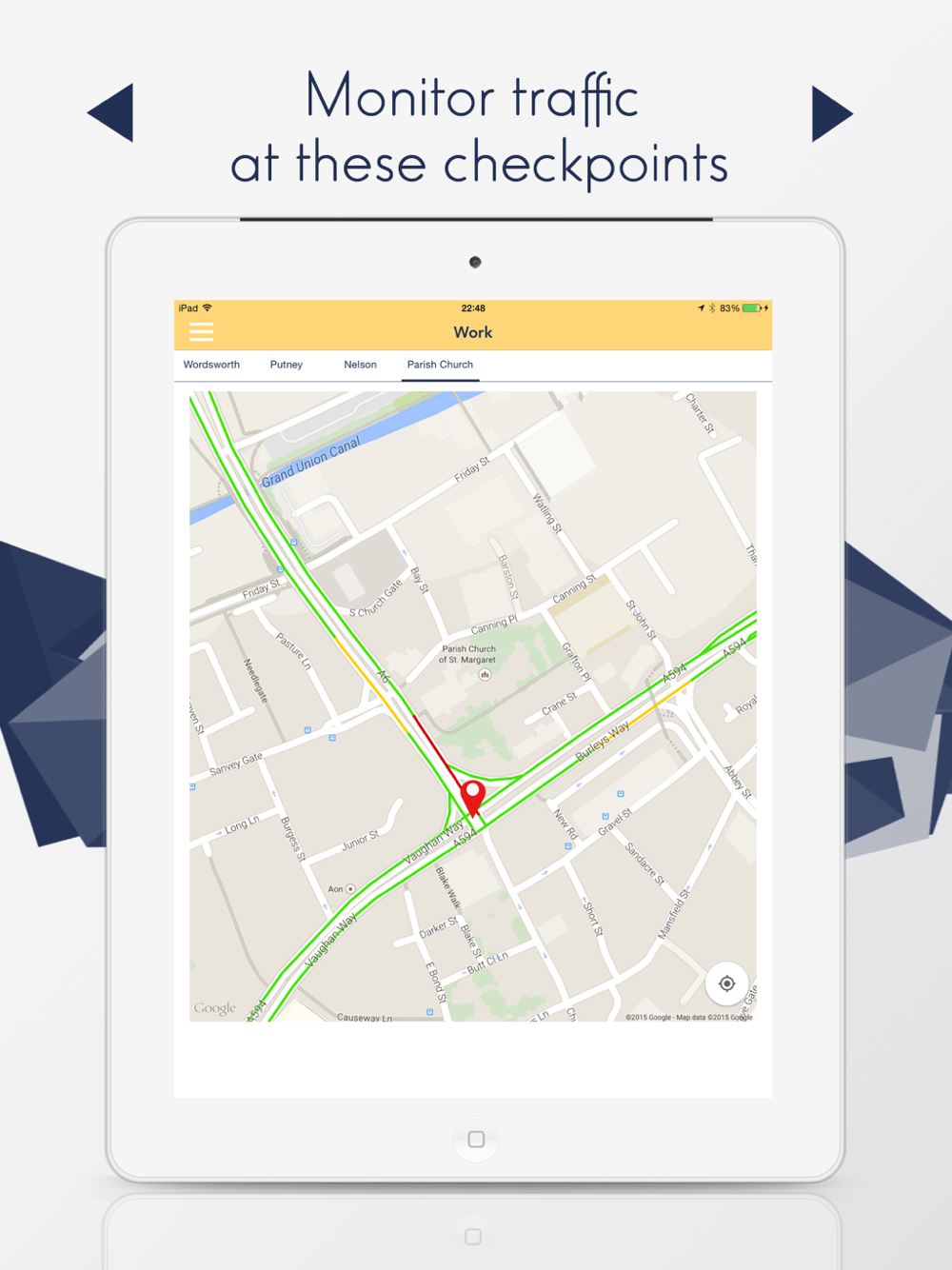 The app uses Google Maps to display traffic data.