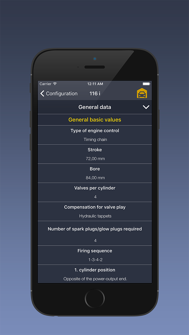 The application contains technical information that will help you in the repair and maintenance of your car.