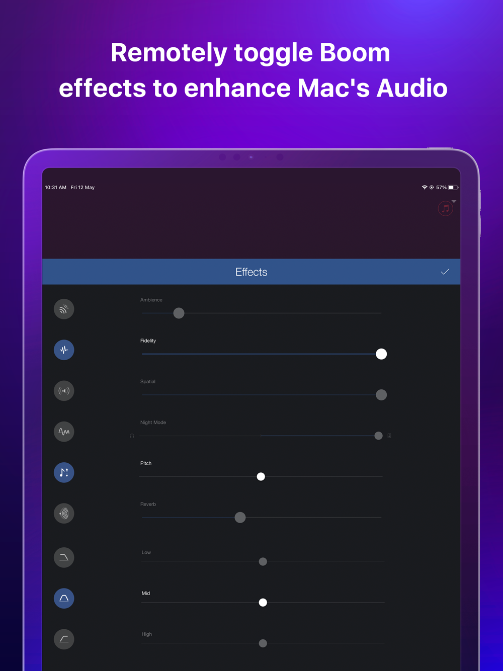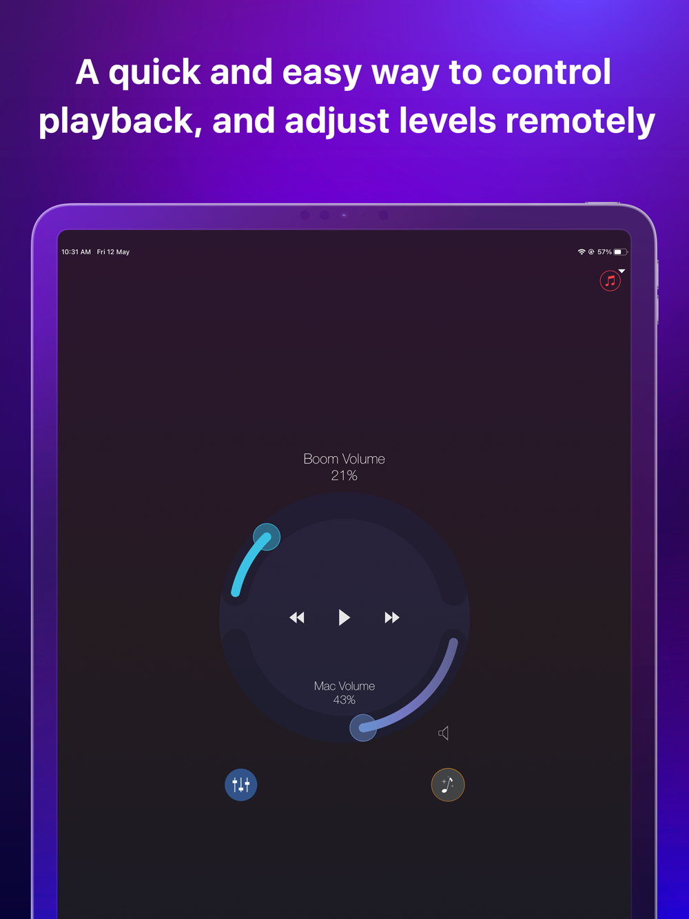 The Boom Remote is a companion app for Boom 2 and Boom 3D, the most popular system-wide audio booster for Mac. With the Boom Remote on your iPhone or iPad (iOS 9 and later), you get to wirelessly control your favorite Boom 2 and Boom 3D features in addition to other well known Mac apps like Spotify, VLC, QuickTime and iTunes. Simply connect your iPhone or iPad to the same WiFi network as your Mac and watch the magic unfold!