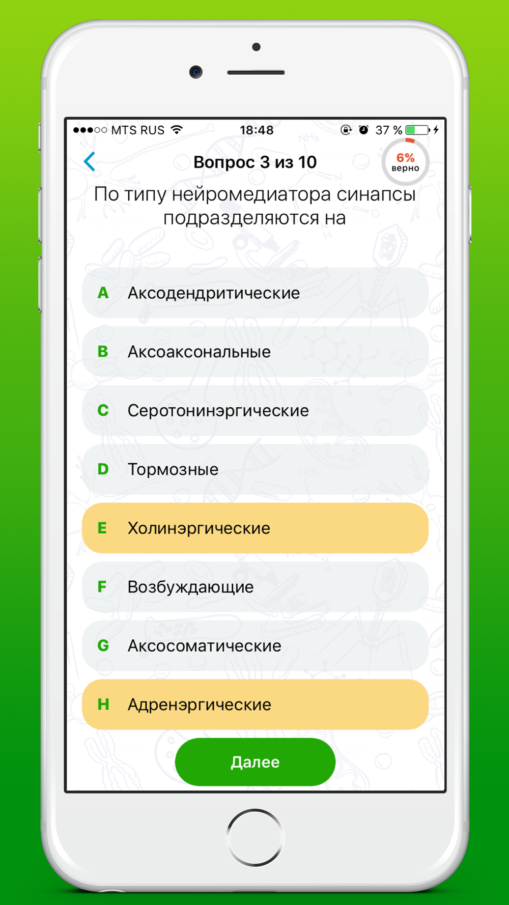 В приложении вас ждут тесты по 40 разделам нормальной физиологии;