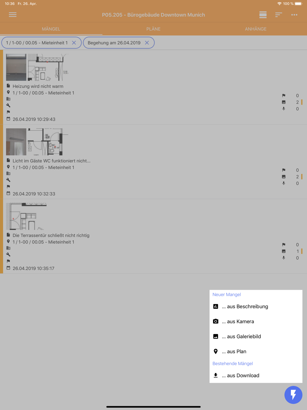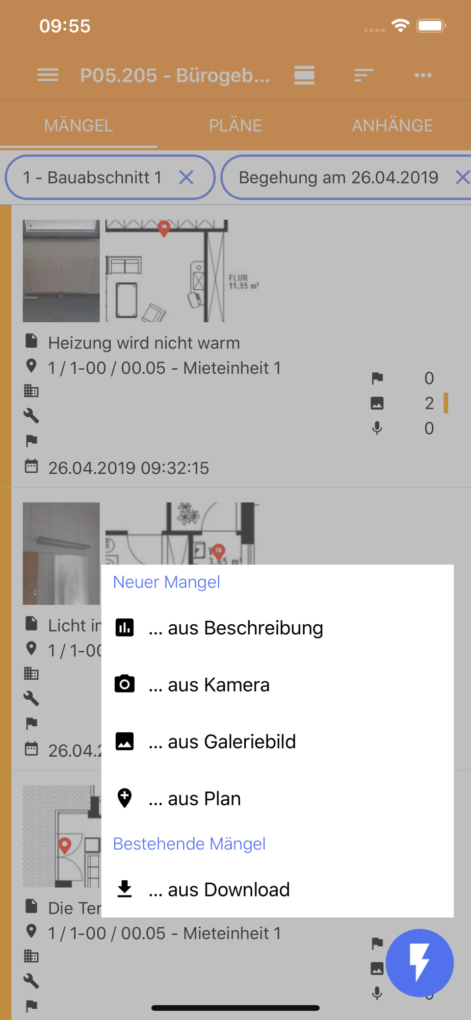 • Download bestehender Mängel
